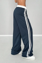 The navy Urban Edge jogger—a bold mix of streetwear edge and everyday comfort. Designed with a relaxed oversized cut, sporty double white side stripes, and a high-rise elastic waistband with drawstring, they deliver a casual-cool silhouette that’s perfect for the gym, the streets, or just lounging in style.