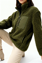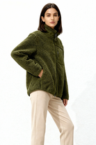 Wrap yourself in warmth with this ultra-soft fleece half-zip pullover. Made with plush teddy sherpa fabric, this cozy layer blends everyday comfort with simple, effortless style. Designed with a relaxed fit, soft sleeves, and a warm stand-up collar, it keeps you snug without feeling bulky. Perfect for cool autumn and winter days.