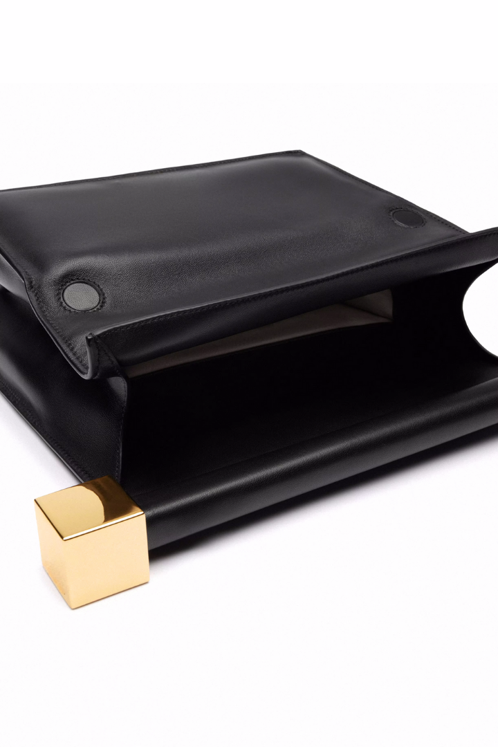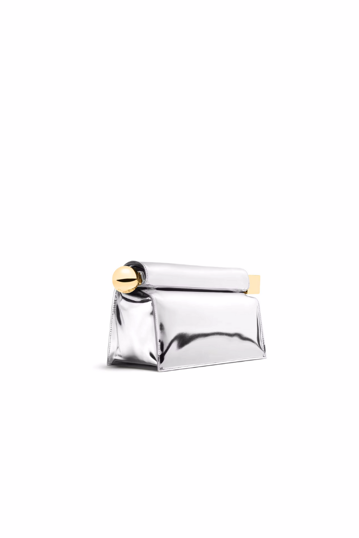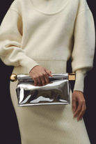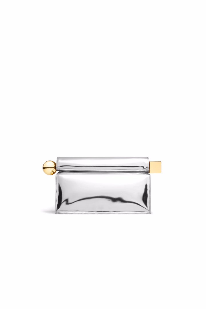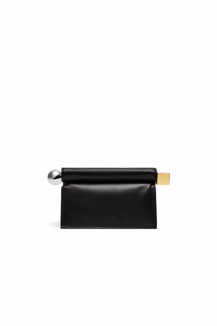 Add bold elegance to your evening look with this black & silver geometric clutch bag. Designed with a structured silhouette and striking silver ball and gold bar accents. Practically with every step thanks to magnetic closure. This bag is a statement piece that transitions effortlessly from cocktail parties to formal events.