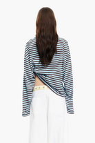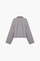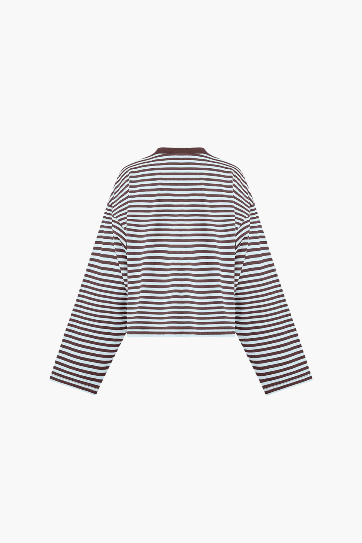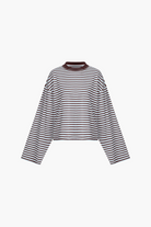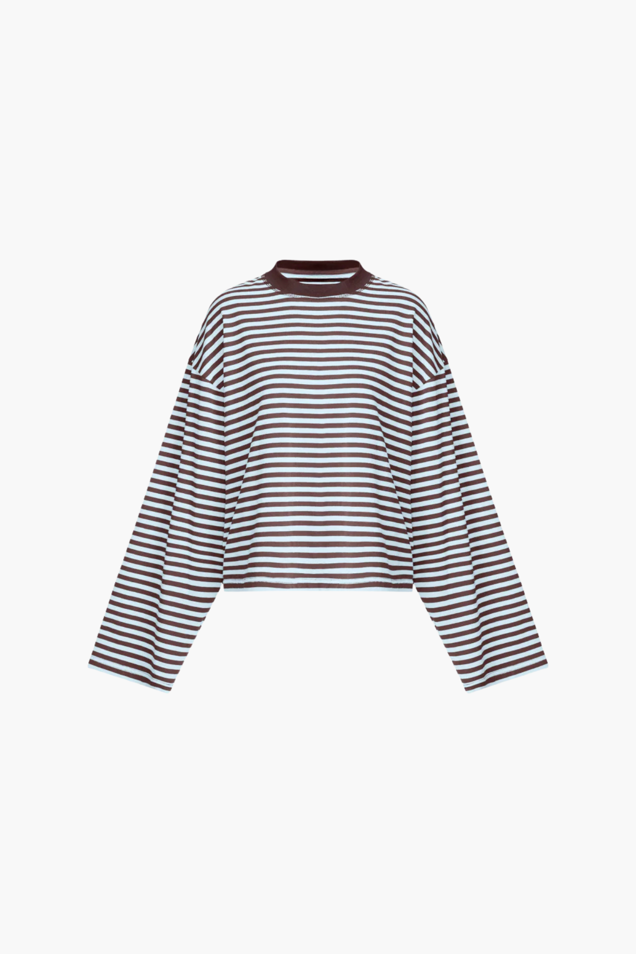 A modern take on the striped knit. The oversized long-sleeve shirt drapes cleanly with a relaxed, boxy silhouette that feels easy yet polished. The ribbed crew neckline and tidy rib trims keep the shape neat. Perfect with denim, trousers, or a slip skirt.