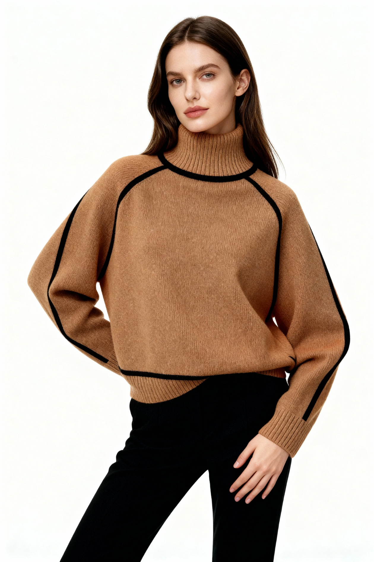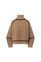The valerie edge turtleneck brings graphic contrast to a timeless winter staple. Knitted in a soft, structured cotton blend, it features a high ribbed collar and bold black piping that sharpens the clean silhouette. An easy piece to elevate denim, coats, or wide-leg trousers.