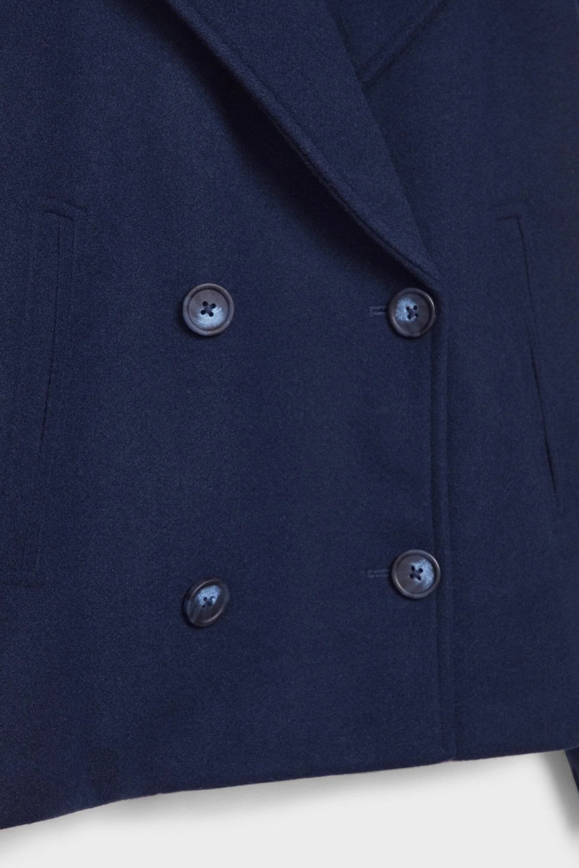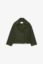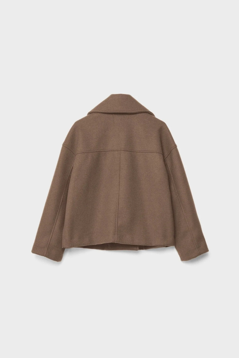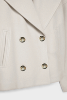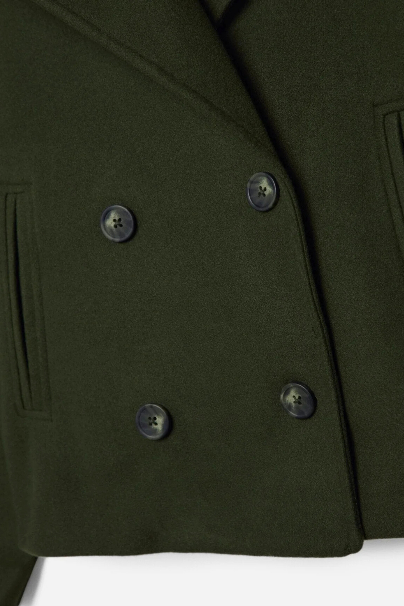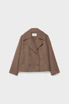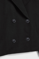 Refined, versatile, and modern—this cropped wool blend coat is a timeless wardrobe staple with a contemporary twist. Designed in a boxy double-breasted cut, it features wide notched lapels, structured shoulders, and a cropped length that pairs effortlessly with high-waisted jeans, tailored trousers, or dresses.