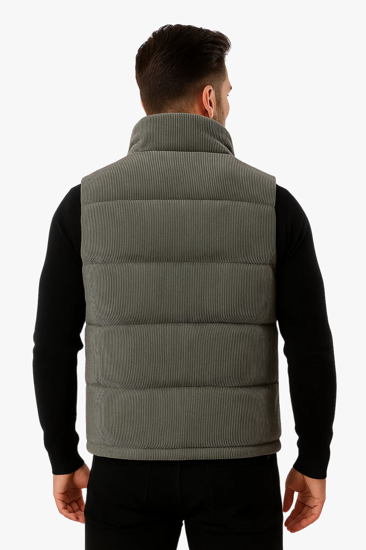 The Monterra cord puffer vest blends rugged corduroy with padded comfort, giving you a smart layer that holds its shape and keeps you warm. Designed with a high collar, easy snap closure, and soft lining — it’s made to move with you, wherever the day goes.