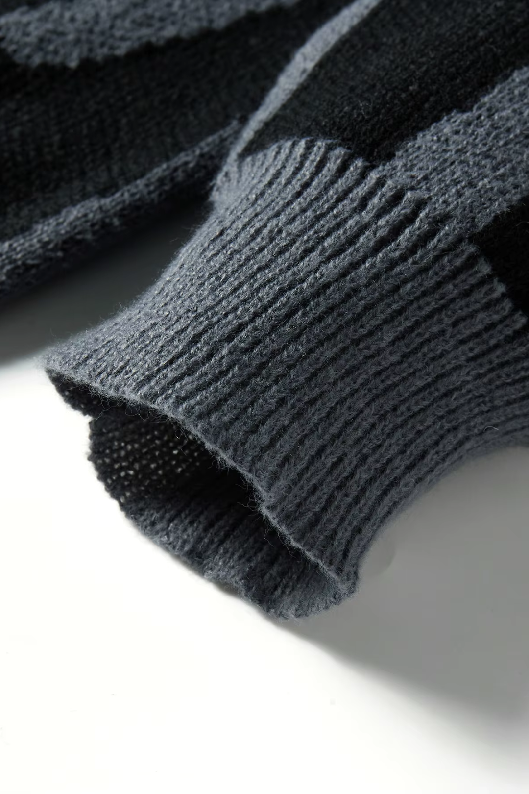 Elevate your cold-weather essentials. This monochrome knit sweater features an abstract pattern, classic crew neckline, and a relaxed pullover fit. Knitted from a soft, midweight fabric, it delivers all-day comfort with a bold, modern edge. Perfect for layering on cooler days, casual city wear, or elevating a simple outfit with effortless style.