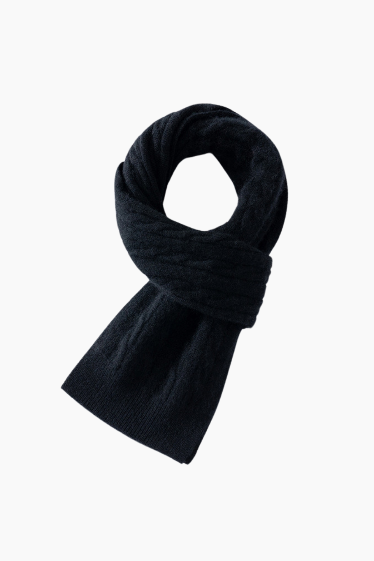 The Milo scarf is crafted from 100% premium cashmere, offering an unmatched level of softness, warmth, and sophistication. The cable-knit weave adds depth and structure while maintaining a cozy, lightweight feel — perfect for cold-weather layering without bulk.