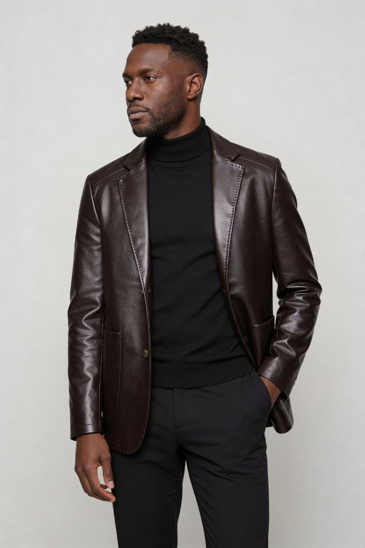 Matteo Tailored Leather Blazer - Brown