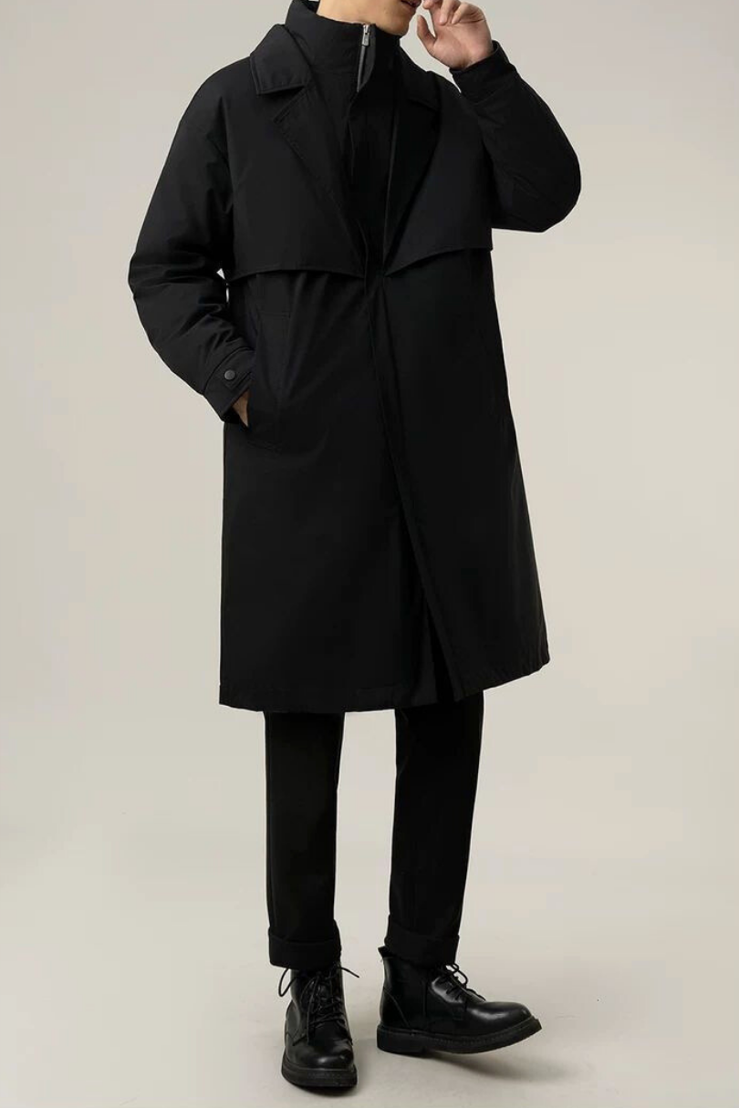 Designed for dependable winter warmth, this men’s long down coat offers extended coverage, practical insulation, and everyday comfort. Filled with genuine duck down and constructed with a thickened outer layer, it provides balanced warmth for cold urban conditions without excessive bulk. The extra-long silhouette and integrated hood enhance protection against wind and low temperatures, making it a reliable choice for commuting, daily wear, and casual winter styling.