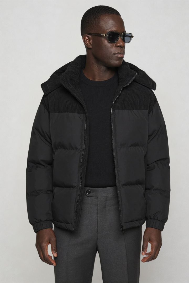 Explore coats and jackets designed to define your outer layer. This collection brings together tailored wool coats, insulated puffers, refined overshirts, and lightweight jackets Each crafted with clean structure and modern proportions.