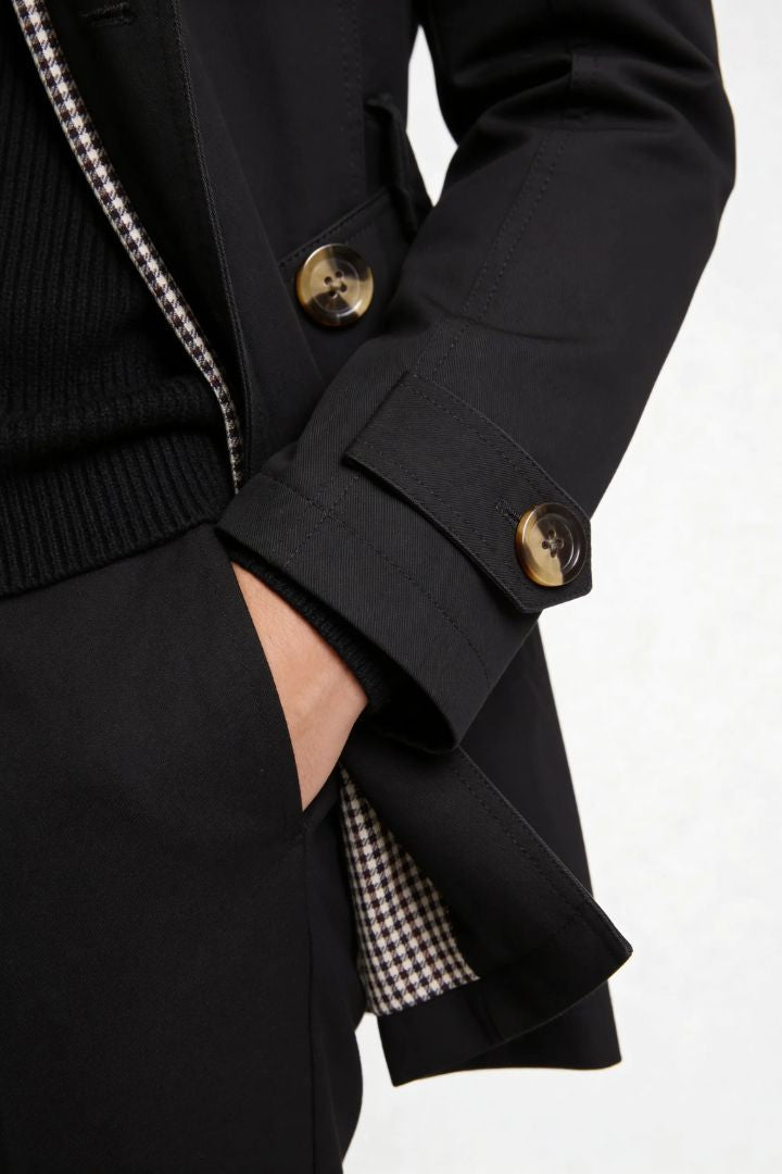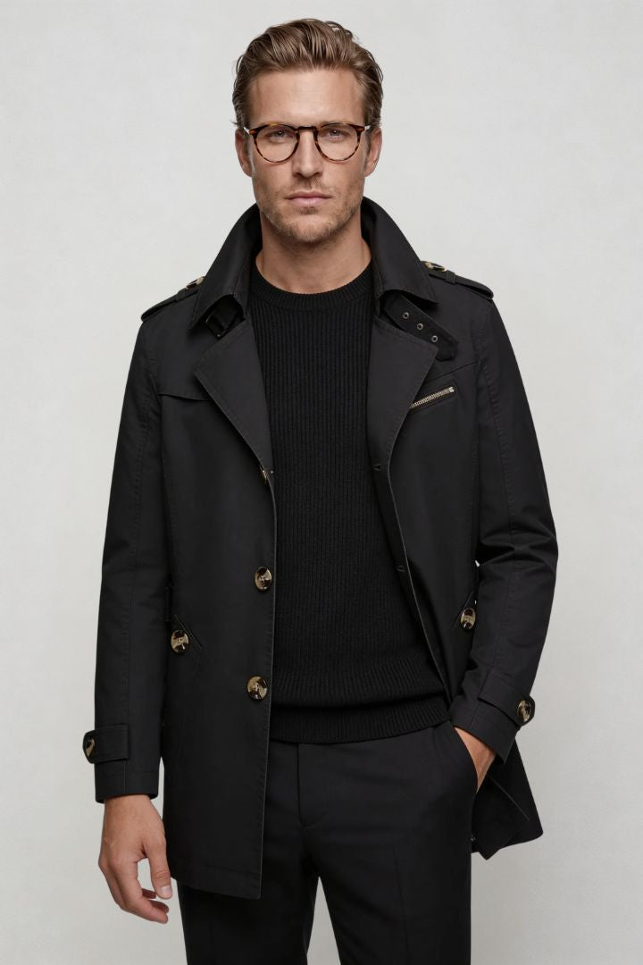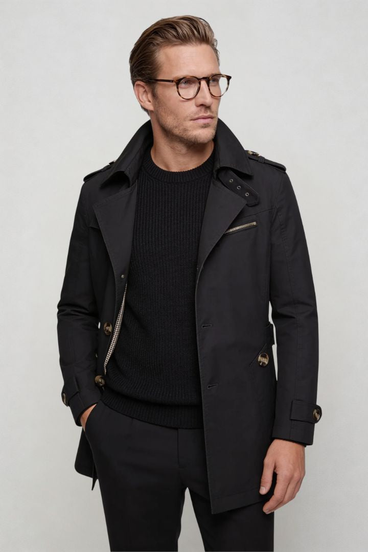 The Harrison Trench Coat is designed for men who appreciate clean lines and understated presence. Inspired by classic trench tailoring, it delivers a structured silhouette with modern refinement — sharp enough for business settings, effortless enough for everyday wear.