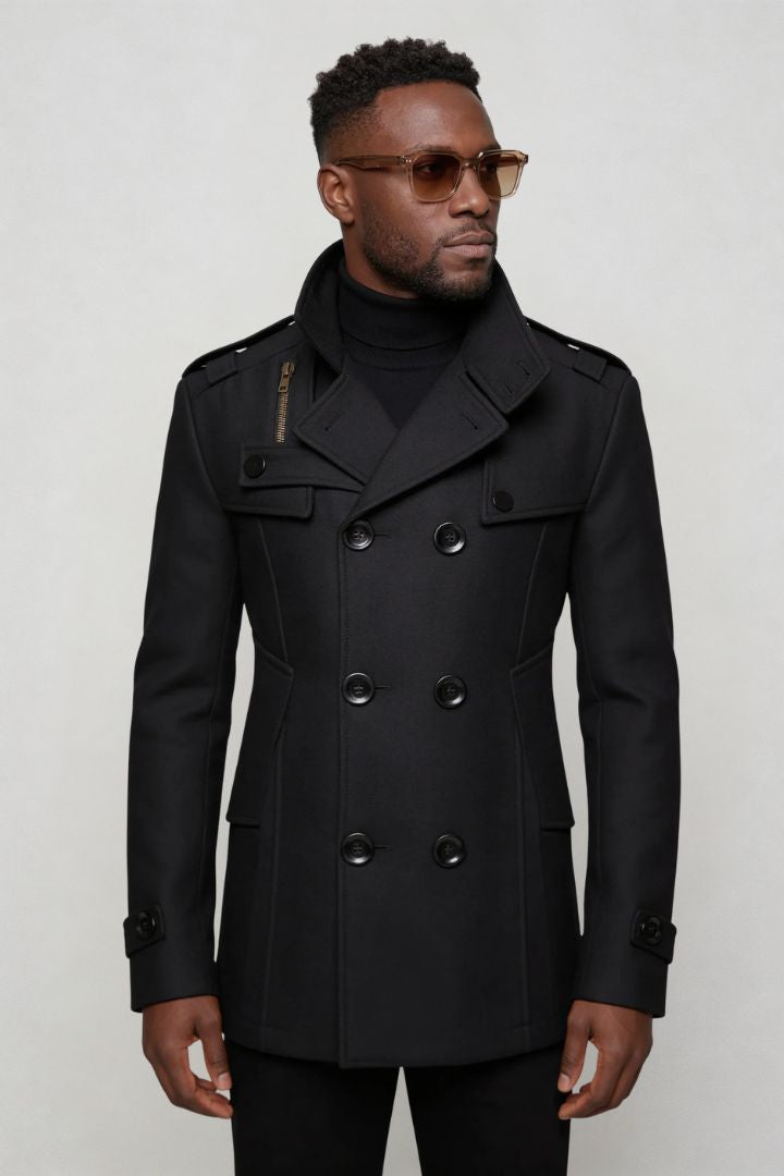 The Valden Classic Peacoat is built for presence. A structured wool blend exterior delivers warmth without bulk, while the sharp double-breasted front and strong lapels create a confident, tailored silhouette.