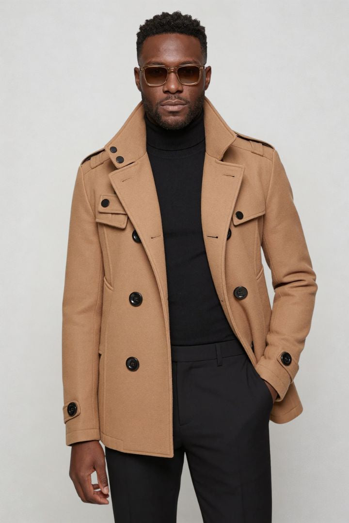 The Valden Classic Peacoat is built for presence. A structured wool blend exterior delivers warmth without bulk, while the sharp double-breasted front and strong lapels create a confident, tailored silhouette.