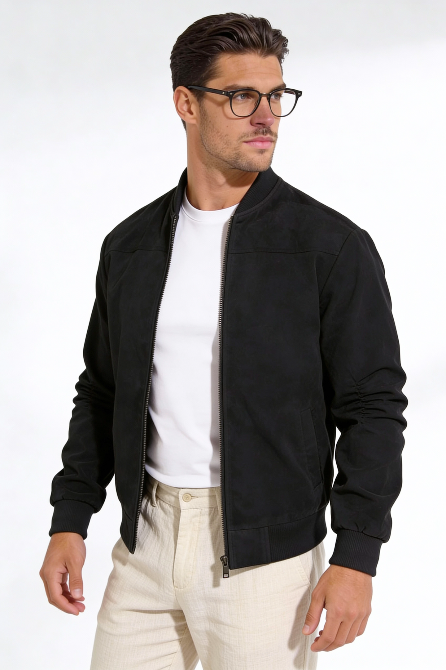The Calvion Suede Bomber Jacket defines modern minimalism with a refined texture and clean, tailored design. Crafted from premium microfiber synthetic suede, it delivers the look and feel of luxury with lightweight comfort and everyday durability.