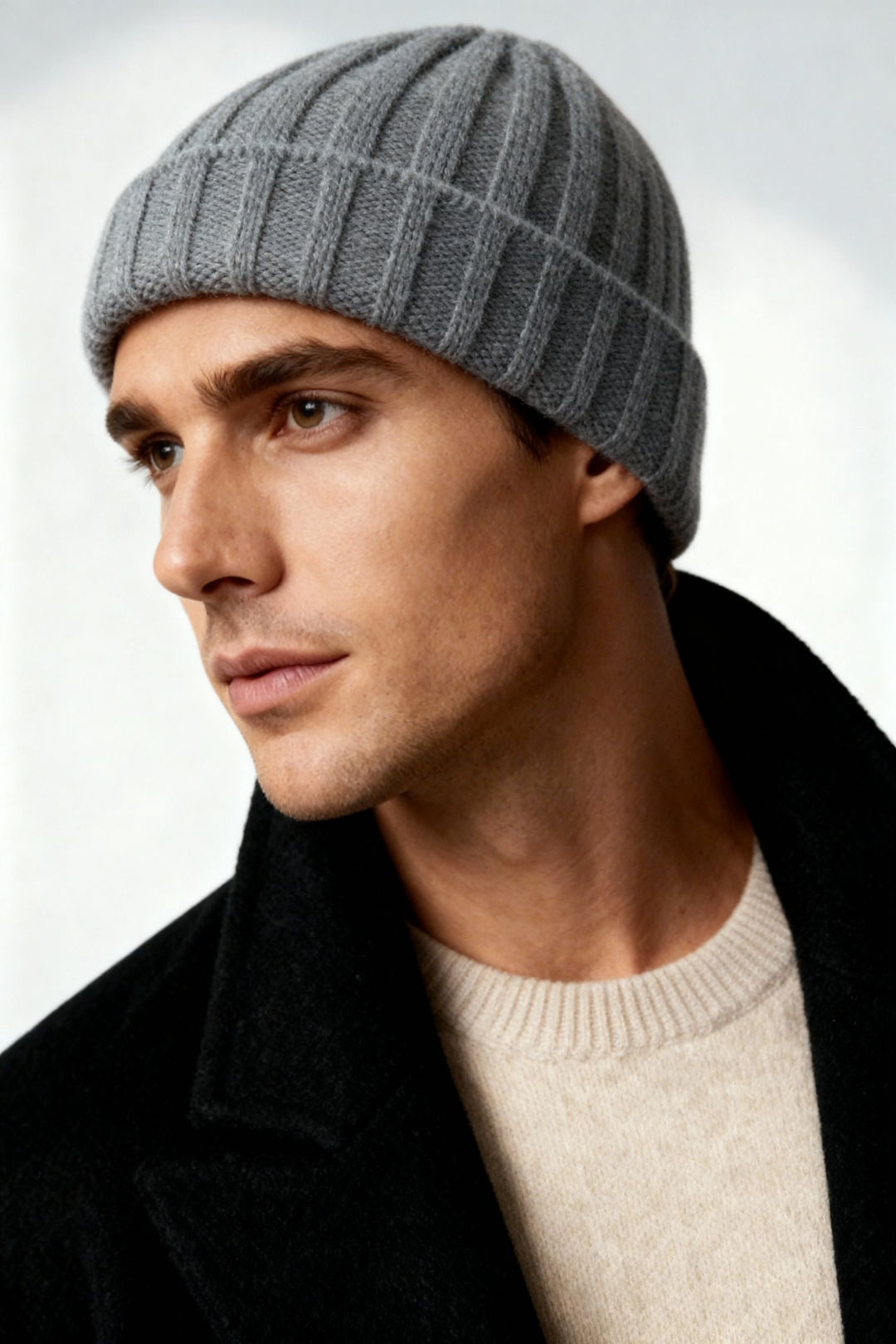 The Arlo 100% Cashmere Rib Knit Beanie is made from premium, ultra-soft cashmere that delivers natural warmth without the weight. The ribbed knit adds stretch for a comfortable fit, and the foldover cuff gives a clean, timeless look that works from streetwear to minimal luxury outfits.