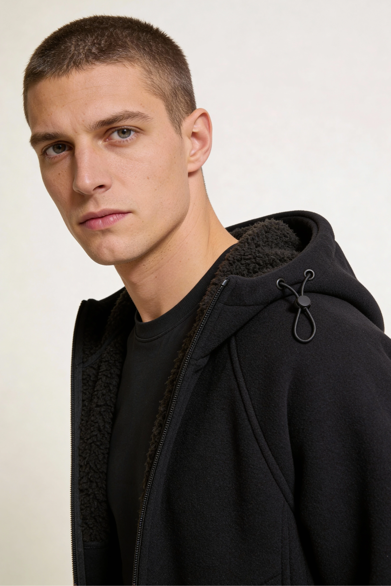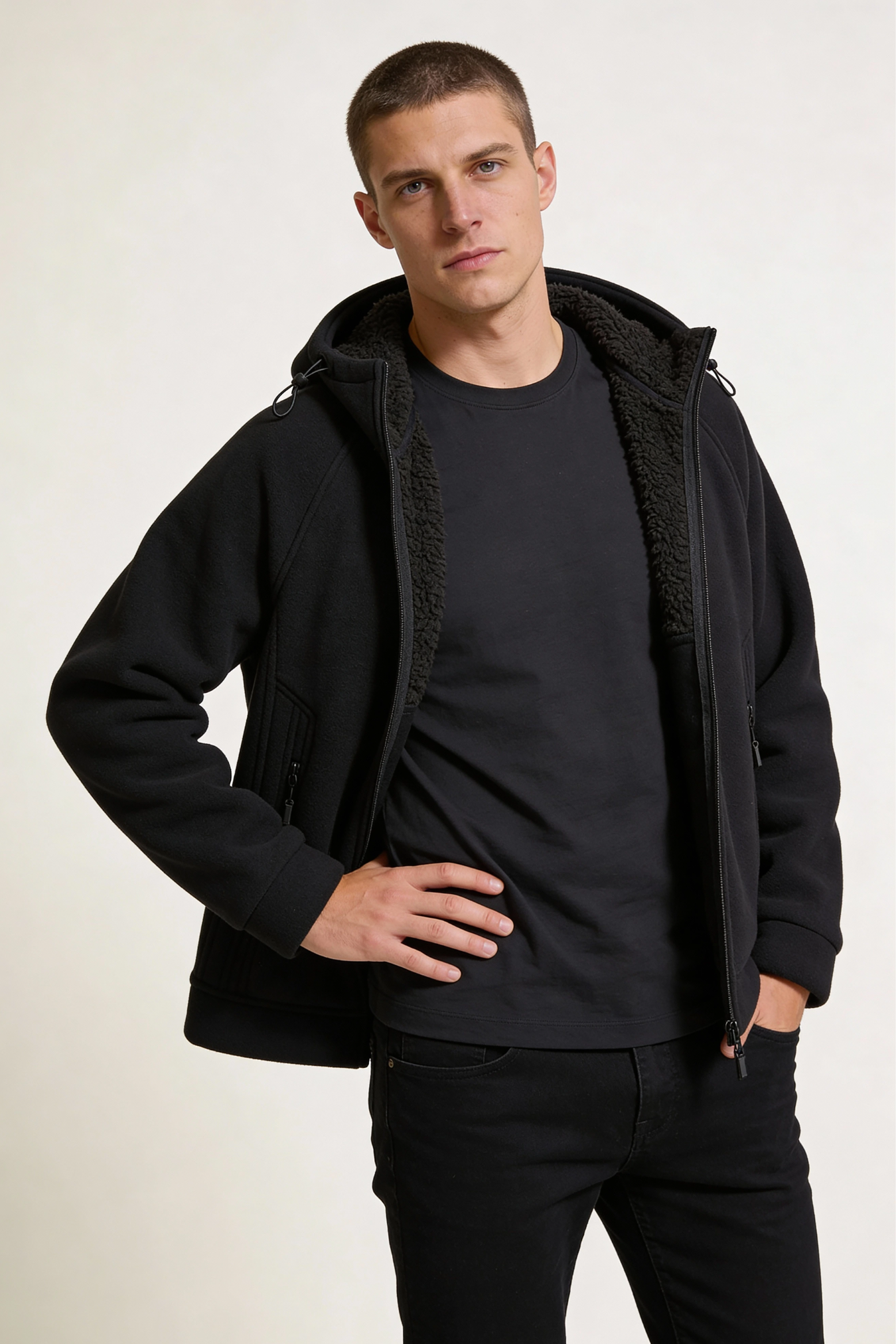 Designed for cold-weather comfort and effortless layering, this men’s thick sherpa fleece jacket delivers reliable warmth with a clean, masculine silhouette. Crafted from a plush sherpa fleece lining, it features a hooded zip-up design that locks in heat without feeling bulky. Soft, structured, and easy to wear, this jacket is made for winter days, casual outings, and relaxed everyday style.