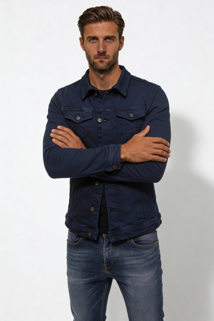 The Brooks denim jacket delivers a sharp, modern take on a timeless classic. Crafted from high-quality cotton denim, it offers a structured yet comfortable fit that elevates everyday outfits. The clean silhouette and tailored shape create an effortlessly stylish look—easy to dress up or down, and designed for confident, modern wear year-round.