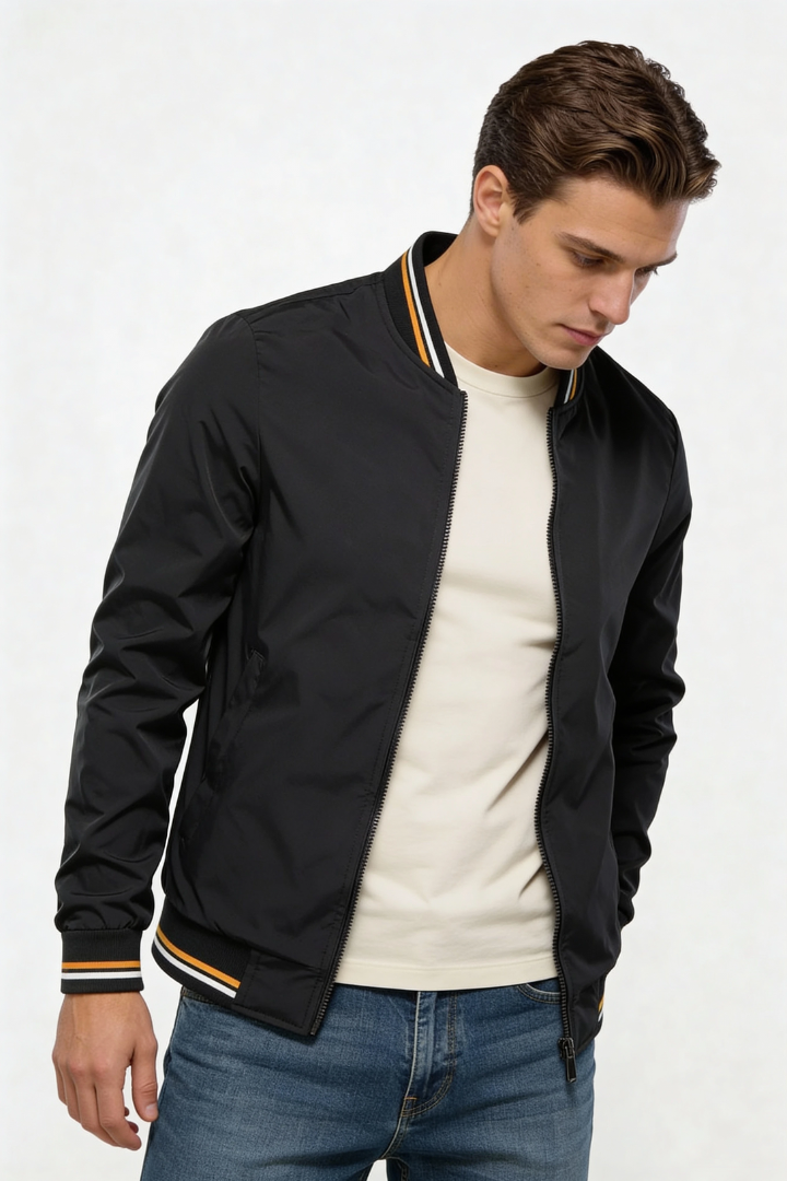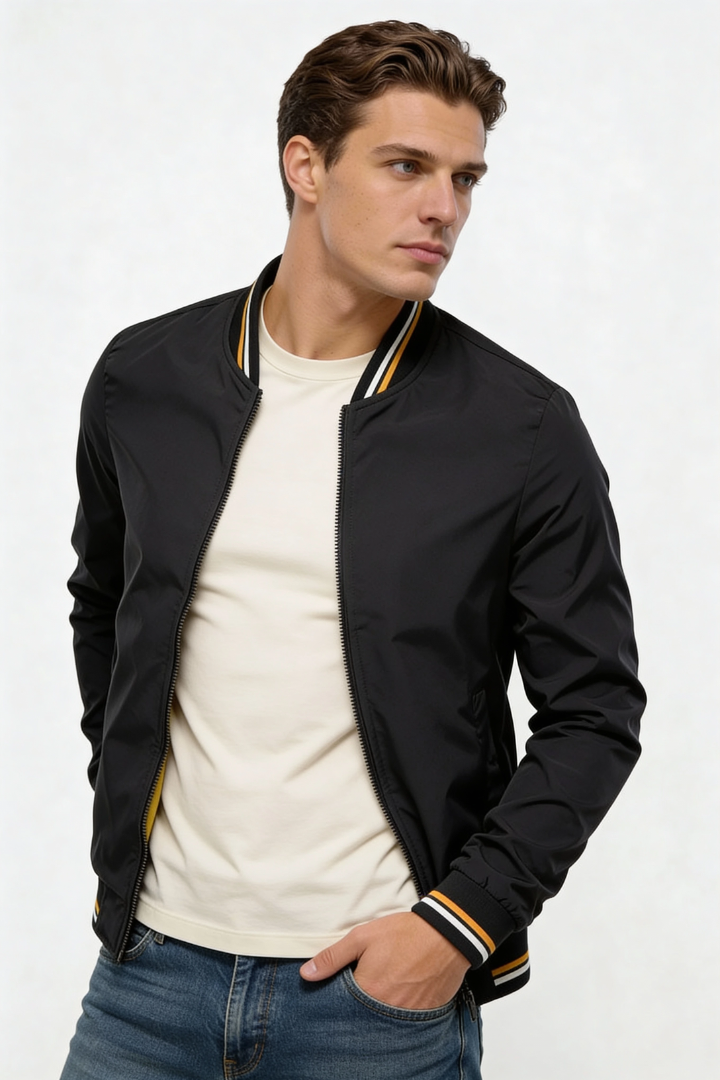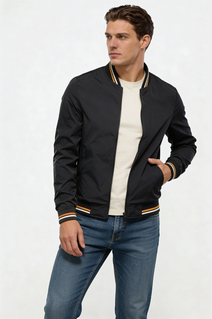 Designed for effortless everyday wear, this men’s lightweight zip jacket delivers a clean bomber silhouette with breathable comfort and modern versatility. Crafted from a soft polyester blend, it offers just the right amount of structure without feeling heavy, making it ideal for layering across spring, fall, and cool evenings. The streamlined zip-front design and ribbed finishes create a refined yet relaxed look.