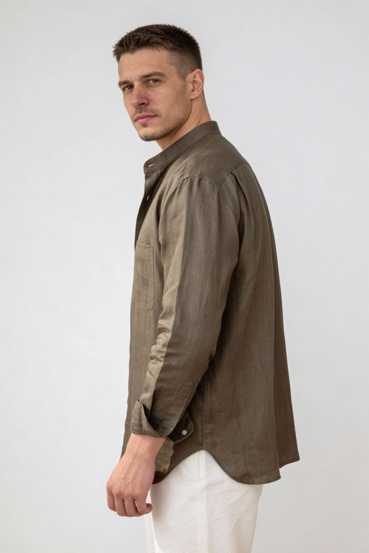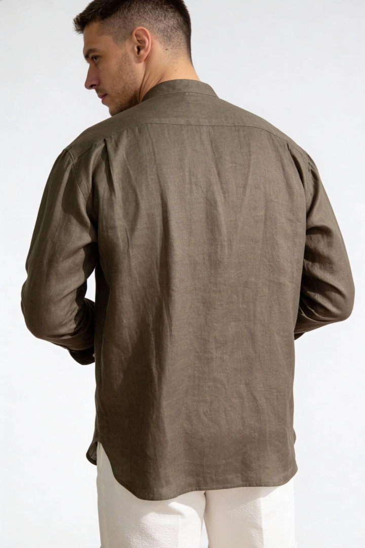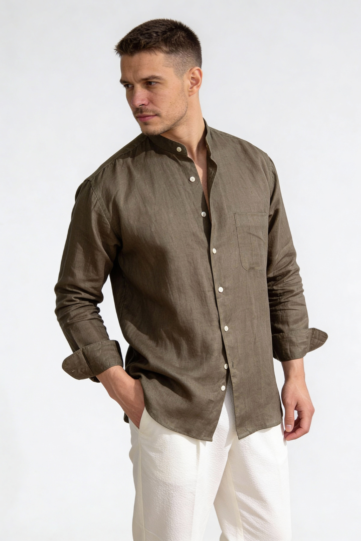 Designed for warm-weather sophistication, this men’s linen shirt delivers breathable comfort with a refined, relaxed silhouette. Crafted from lightweight linen fabric, it allows airflow while maintaining a clean, structured look. The button-up design transitions effortlessly from casual daytime wear to elevated evening styling, making it a versatile staple for summer, travel, and everyday wear.