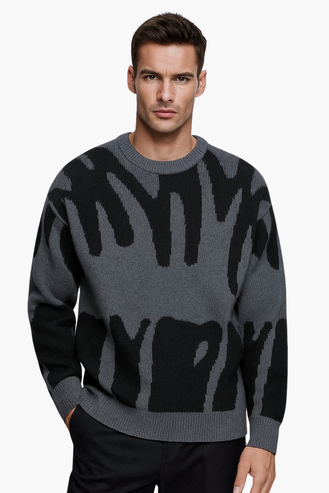 Elevate your cold-weather essentials. This monochrome knit sweater features an abstract pattern, classic crew neckline, and a relaxed pullover fit. Knitted from a soft, midweight fabric, it delivers all-day comfort with a bold, modern edge. Perfect for layering on cooler days, casual city wear, or elevating a simple outfit with effortless style.
