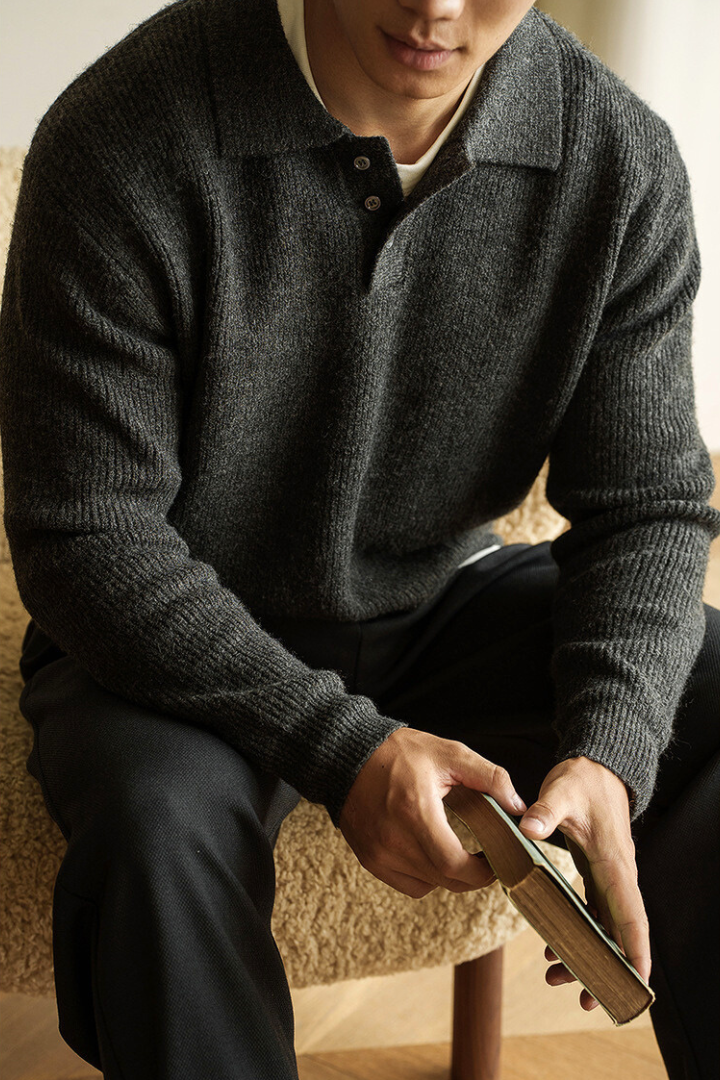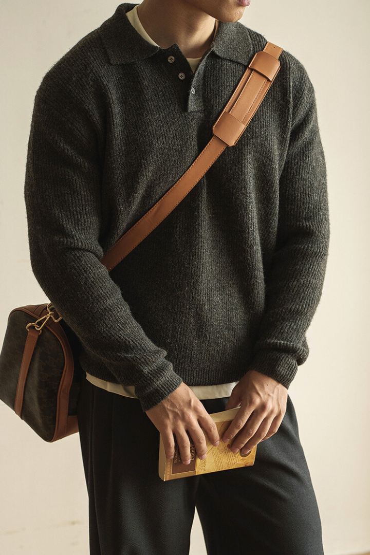 Designed for modern versatility, this men’s knit polo sweater blends the relaxed feel of a sweater with the clean structure of a polo shirt. Crafted from a soft, lightweight knit with added stretch, it offers all-day comfort without sacrificing style. The long sleeve design makes it ideal for spring layering, smart casual outfits, and elevated everyday wear.
