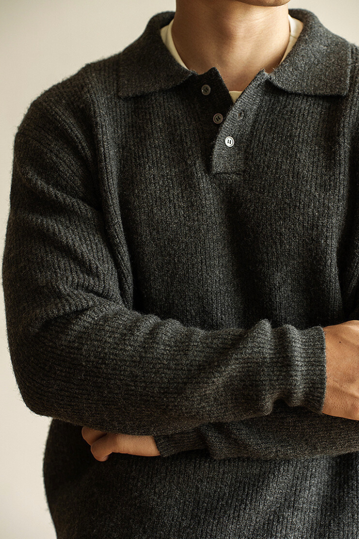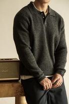 Redford Long Sleeve Knit Polo Sweater - Carbon Gray