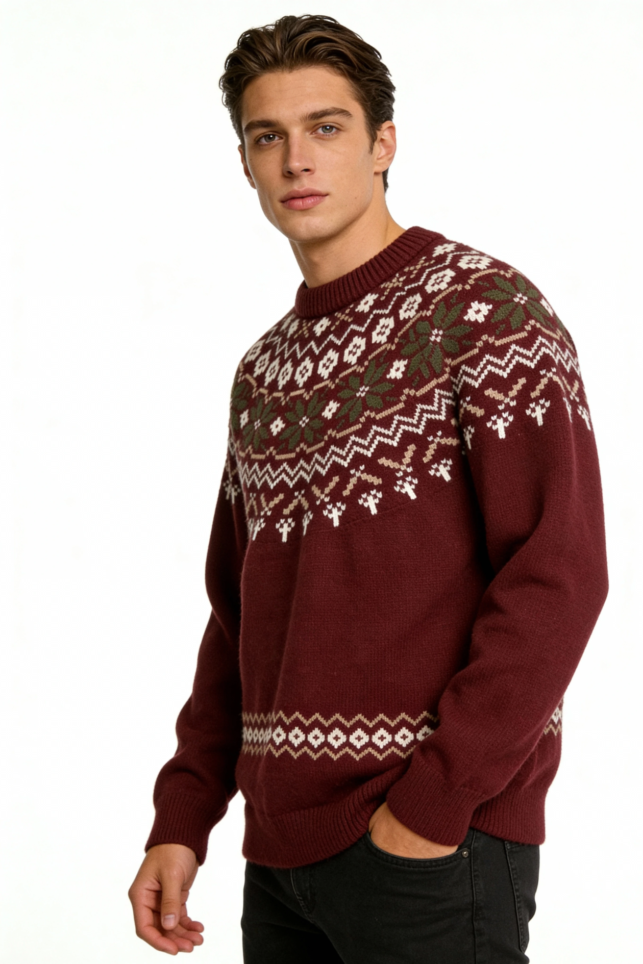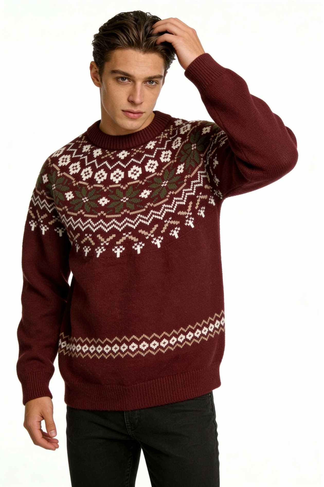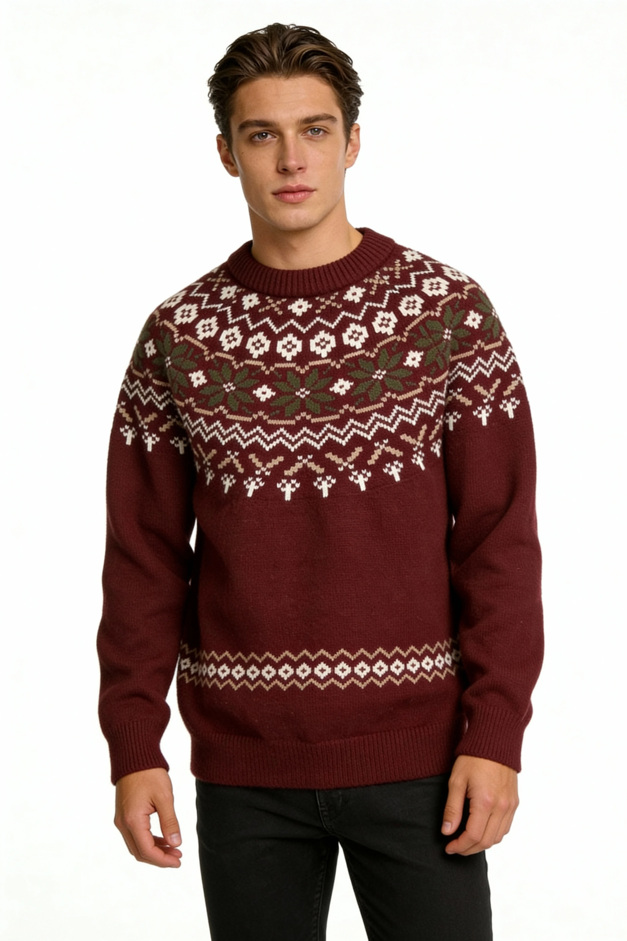 This men’s Christmas sweater delivers classic holiday style with a premium Fair Isle pattern and a soft, warm winter knit. Designed for comfort that lasts all season, it brings together festive detailing and an easy everyday fit. Ideal for holiday gatherings, casual winter outfits, and cozy cold-weather layering.
