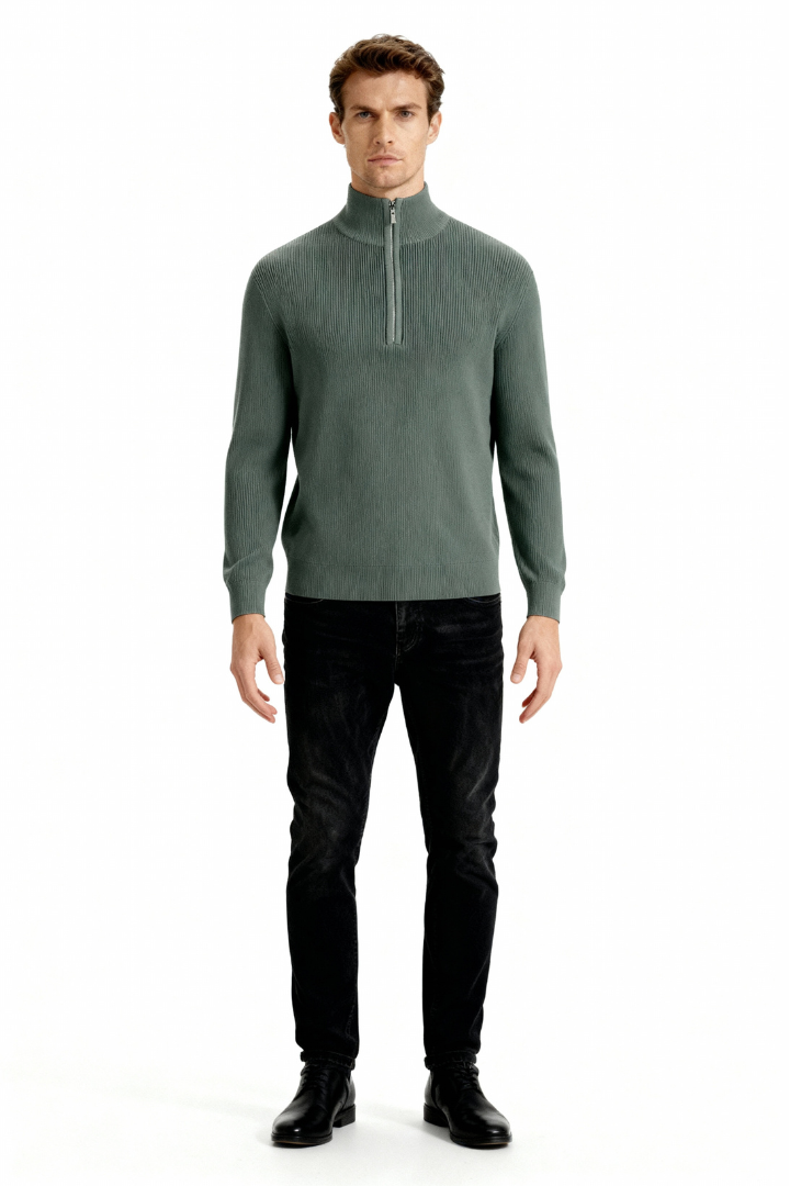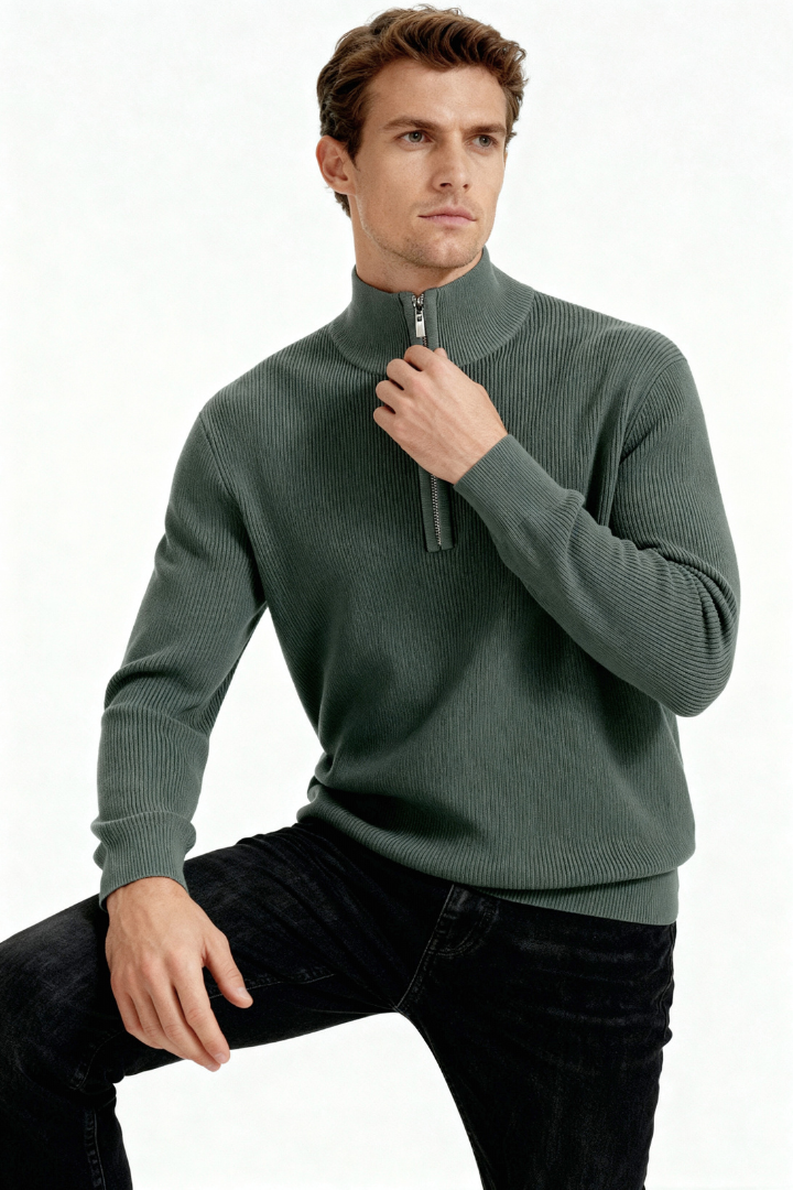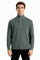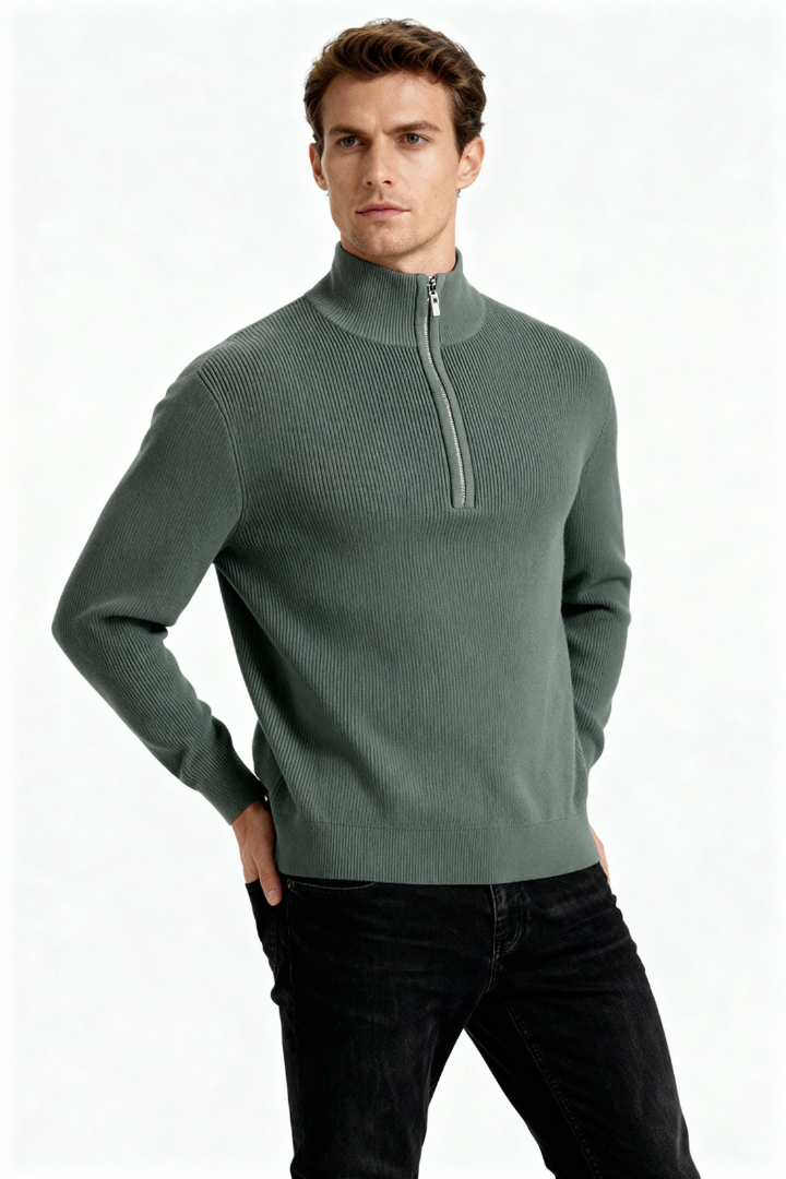 This men’s quarter-zip sweater is crafted from a premium modal and wool blend, giving it a uniquely soft hand-feel, a breathable lightweight finish, and a polished structure that holds its shape. Designed with a modern mock neck and minimalist half-zip, it delivers the clean, elevated look men want. A sweater that feels good, looks sharp, and works anywhere.