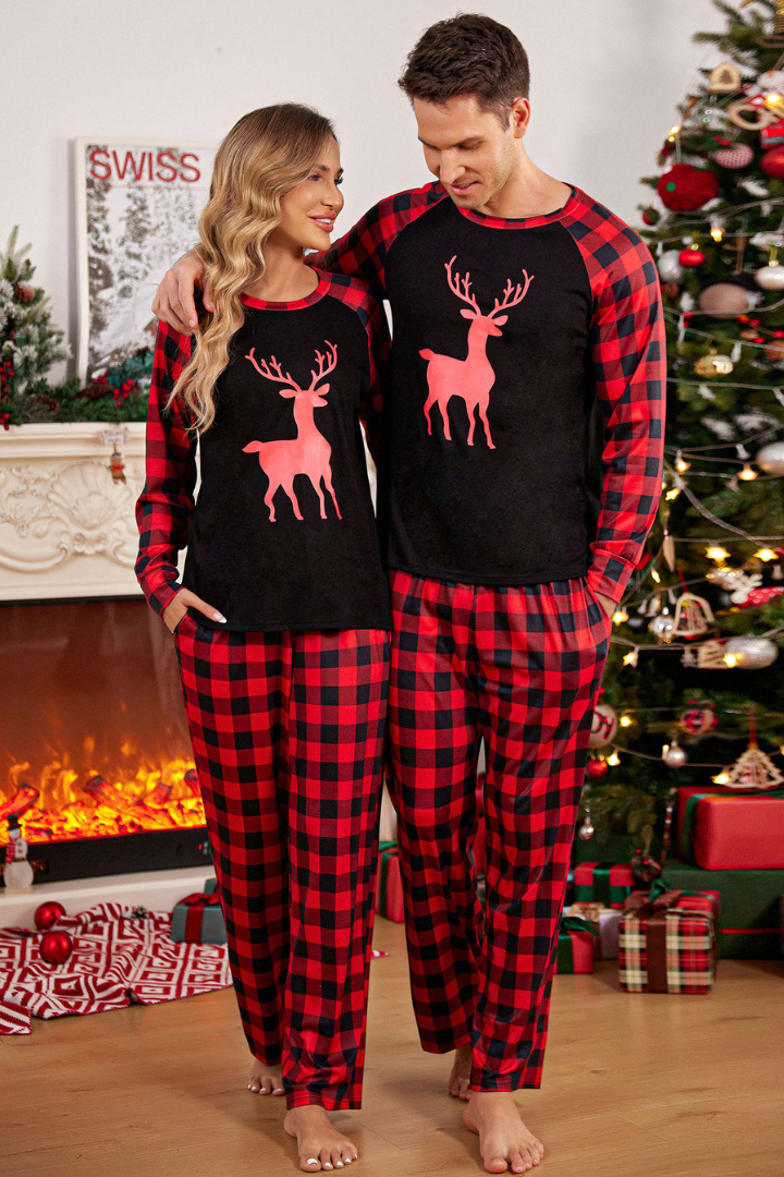 Celebrate the holidays together in this festive matching knit pajama set, designed for warmth, comfort, and seasonal charm. Crafted from a soft brushed knit with gentle stretch, this set features a classic buffalo plaid pant and a cozy long-sleeve top finished with a playful reindeer motif. Perfect for Christmas mornings, movie nights, and winter lounging, it delivers an easy, relaxed fit made for memorable moments at home.
