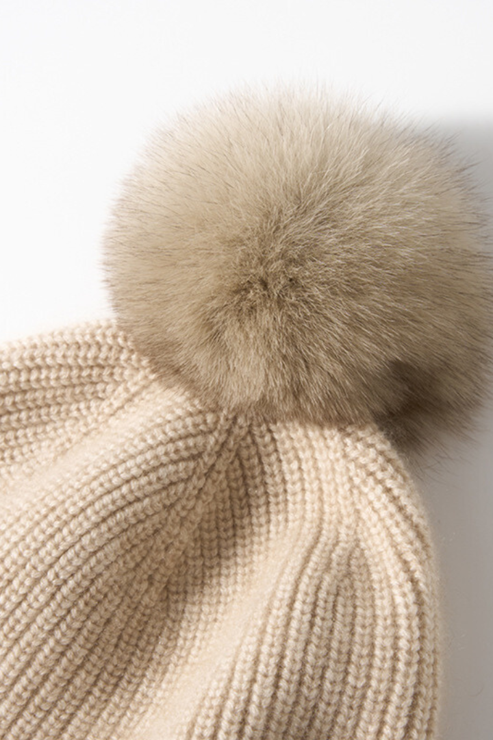 Crafted from ultra-soft cashmere, this women’s pom beanie brings together refined winter style and exceptional warmth. The plush ribbed knit and foldover cuff create a cozy, secure fit, while the real fur pom adds a touch of elevated charm. Lightweight, warm, and endlessly wearable, it’s the perfect cold-weather essential for city days, weekend escapes, and everything in between.