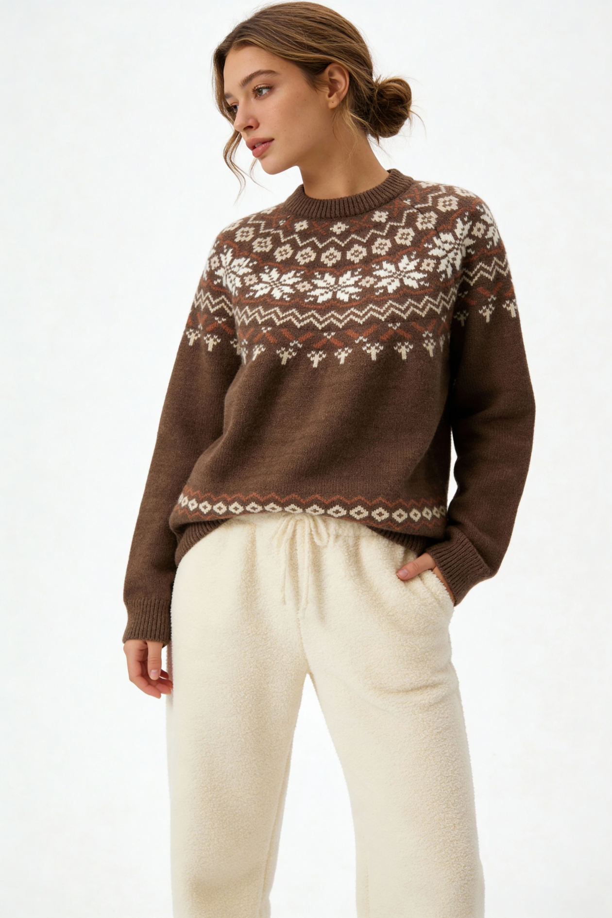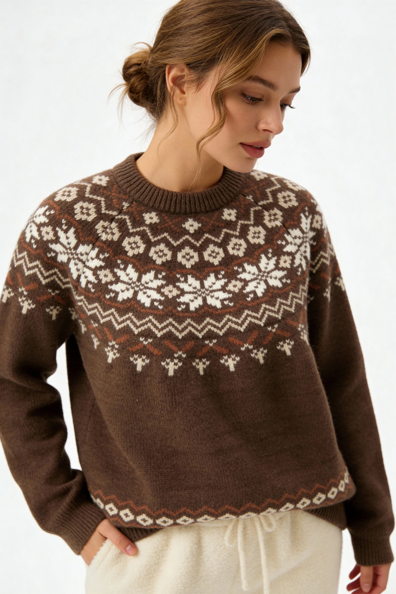 This women’s Christmas sweater delivers classic holiday style with a premium Fair Isle pattern and a soft, warm winter knit. Designed for comfort that lasts all season, it brings together festive detailing and an easy everyday fit. Ideal for holiday gatherings, casual winter outfits, and cozy cold-weather layering.