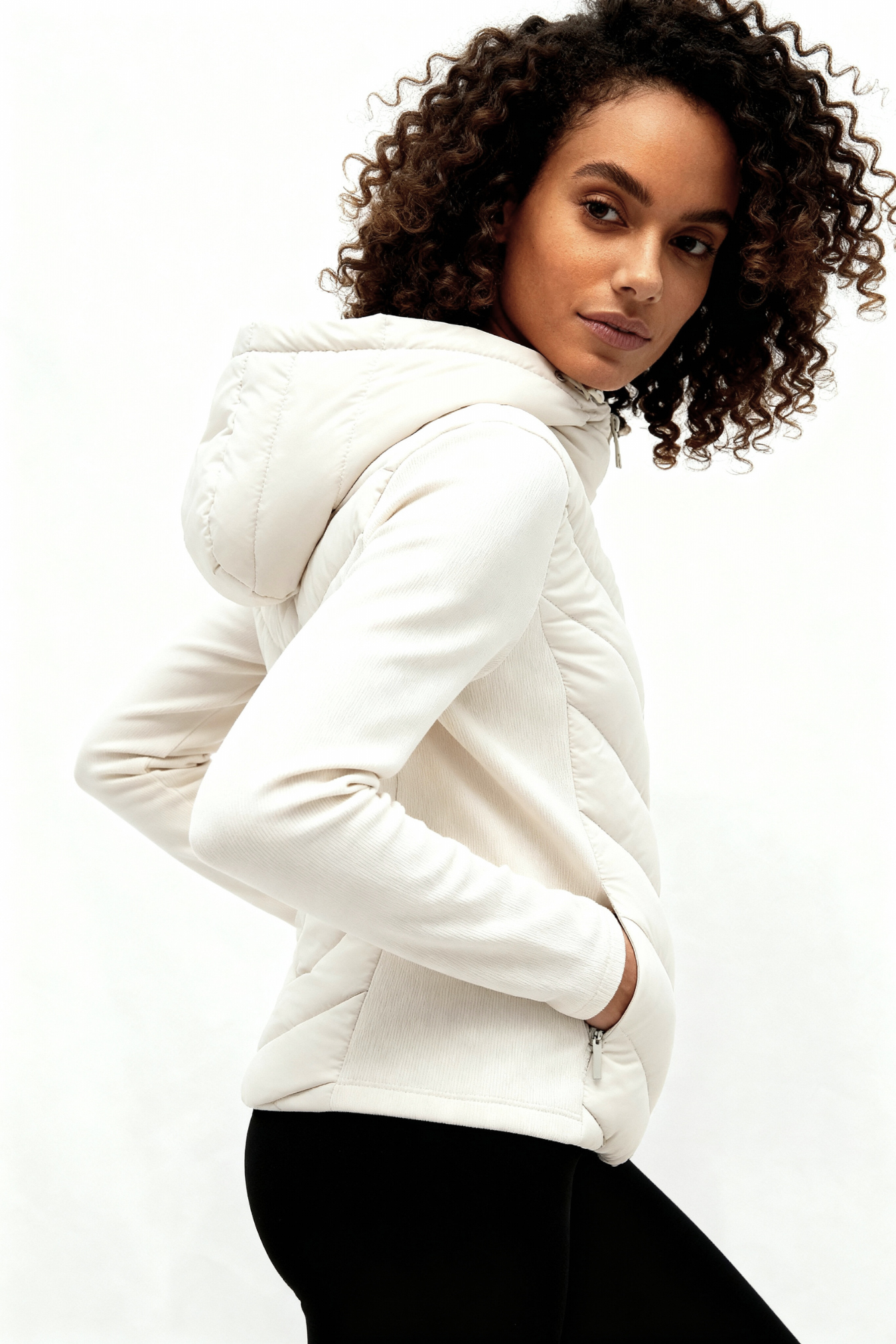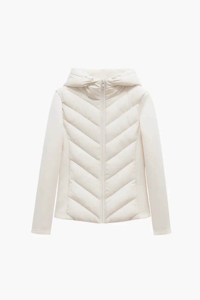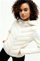Smart. Sleek. Season-ready. The Ember Puffer Jacket combines lightweight warmth with everyday versatility. Its chevron quilted pattern creates a slimming silhouette while the adjustable hood adds protection against chilly winds.