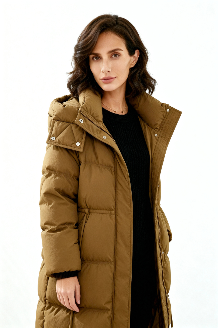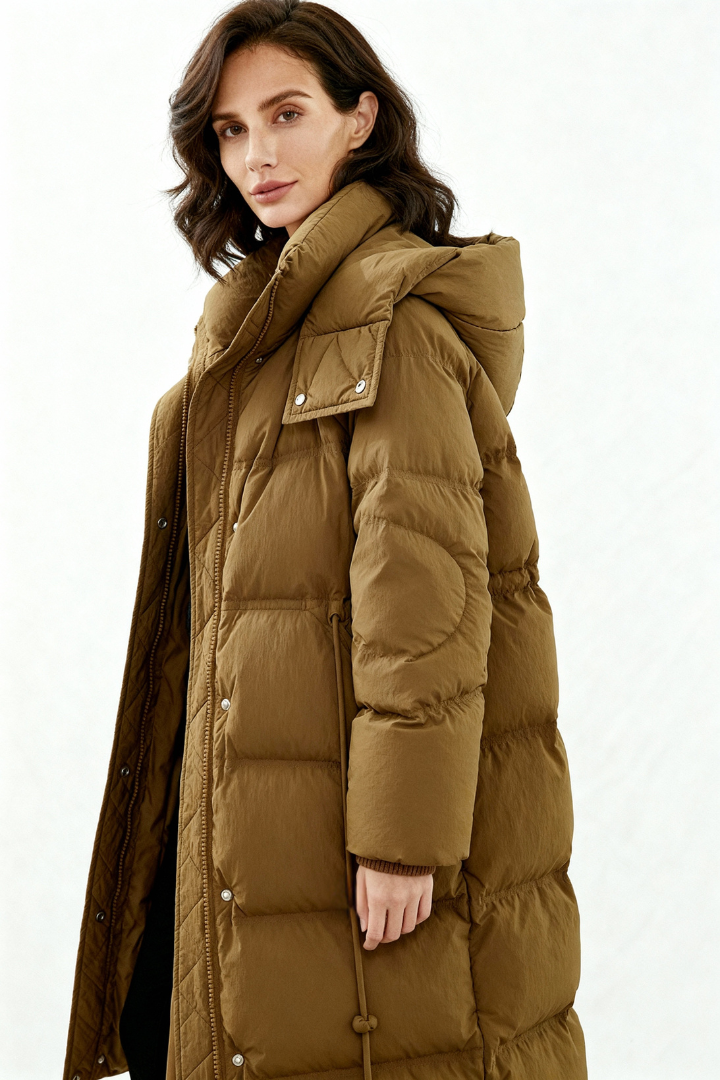 Crafted for cold winters and chilly days, this women’s long puffer jacket delivers exceptional warmth without bulk — thanks to its premium duck down fill and insulated design. The long length, cozy hood, and quilted outer shell offer full-body protection and soft, enveloping comfort from knee to neck.