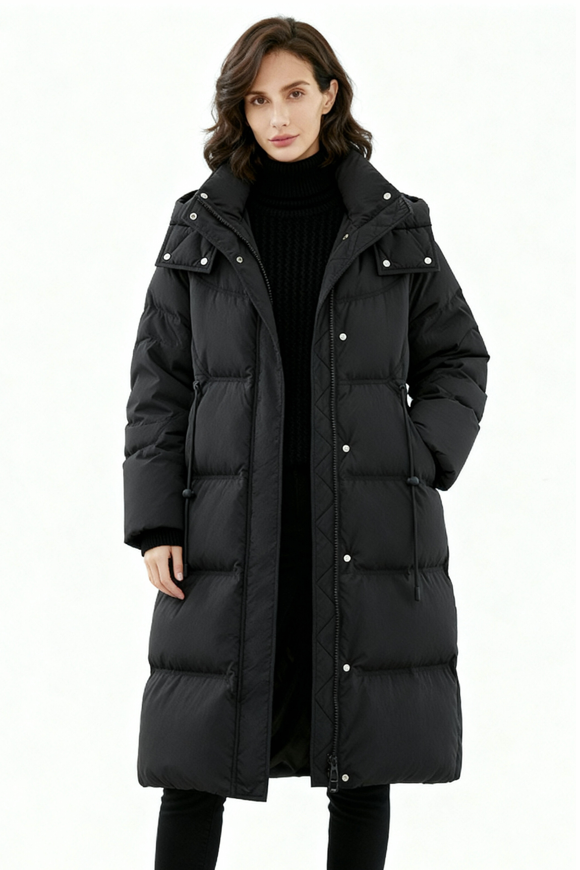 Crafted for cold winters and chilly days, this women’s long puffer jacket delivers exceptional warmth without bulk — thanks to its premium duck down fill and insulated design. The long length, cozy hood, and quilted outer shell offer full-body protection and soft, enveloping comfort from knee to neck.