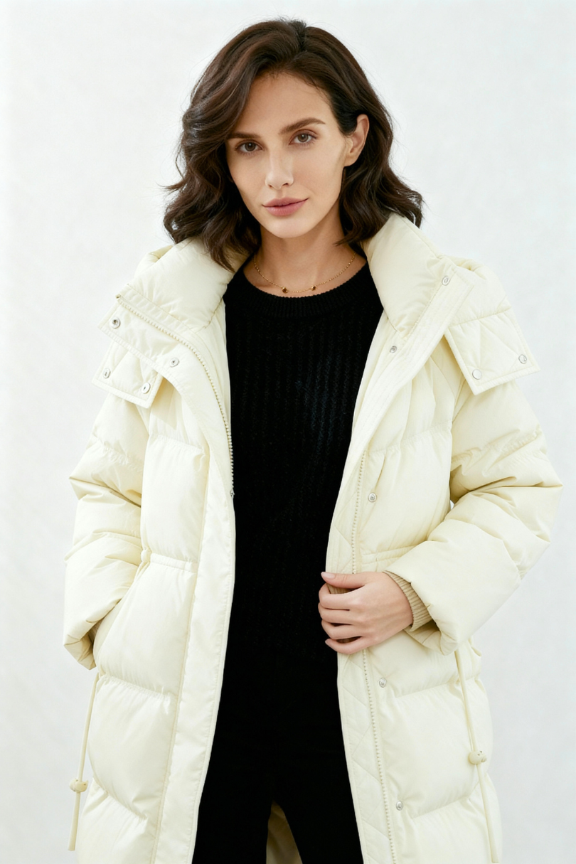 Crafted for cold winters and chilly days, this women’s long puffer jacket delivers exceptional warmth without bulk — thanks to its premium duck down fill and insulated design. The long length, cozy hood, and quilted outer shell offer full-body protection and soft, enveloping comfort from knee to neck.
