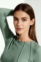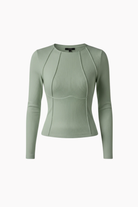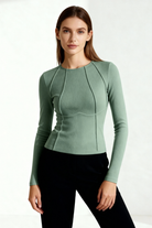 Blending polish and versatility, this olive green ribbed contour top is crafted with sleek seam detailing that shapes the silhouette while keeping the look effortless. Perfect for layering or standing out on its own — refined, modern, and endlessly wearable.