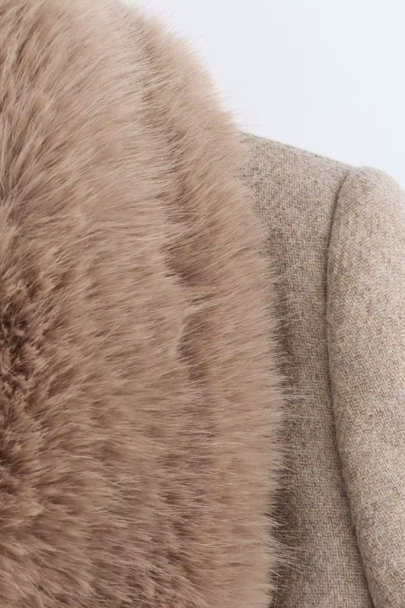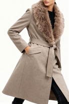 Timeless elegance, modern warmth. The Amara Wool Coat redefines classic outerwear with soft structure and refined detail. Crafted from a premium wool blend, it features a detachable faux fur collar, waist belt, and clean tailored lines that flatter every silhouette.