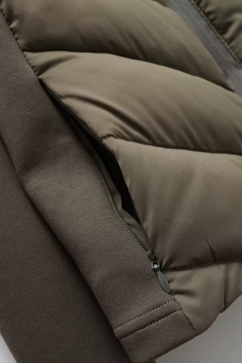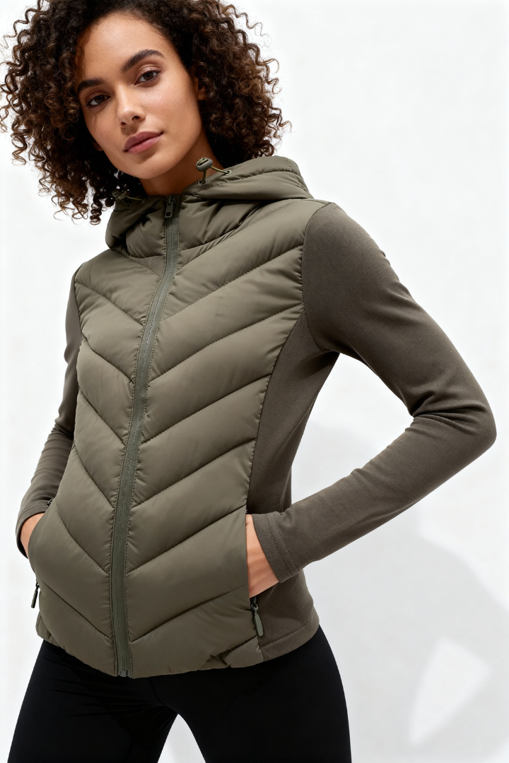 Smart. Sleek. Season-ready. The Ember Puffer Jacket combines lightweight warmth with everyday versatility. Its chevron quilted pattern creates a slimming silhouette while the adjustable hood adds protection against chilly winds.