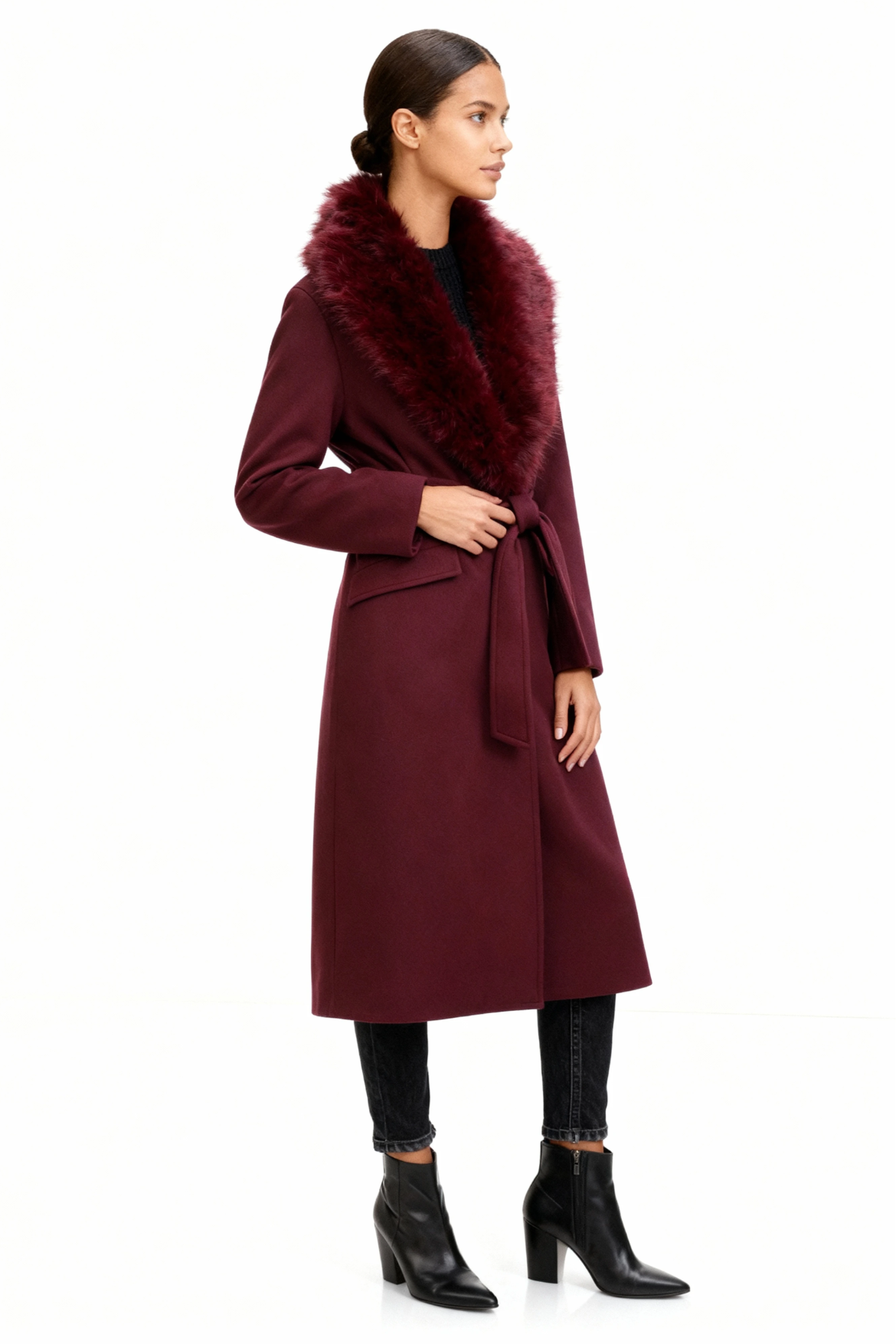 Timeless elegance, modern warmth. The Amara Wool Coat redefines classic outerwear with soft structure and refined detail. Crafted from a premium wool blend, it features a detachable faux fur collar, waist belt, and clean tailored lines that flatter every silhouette.