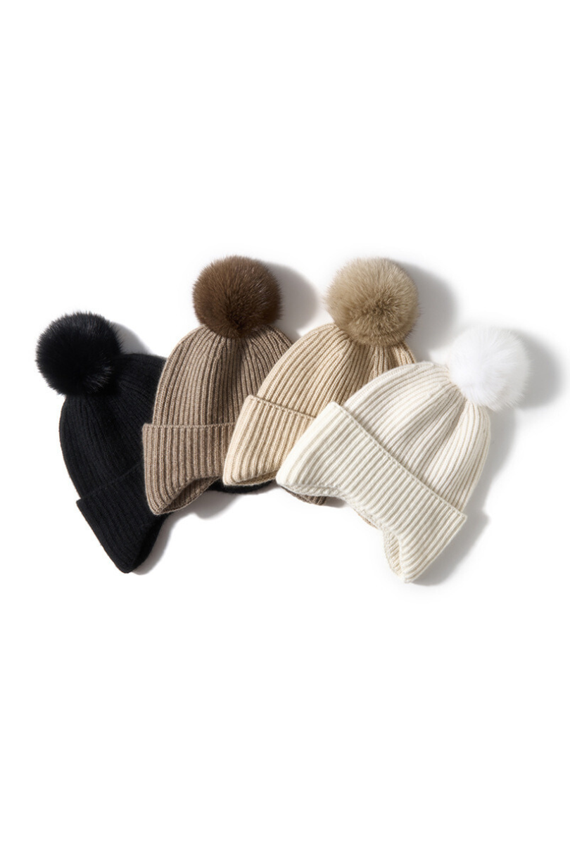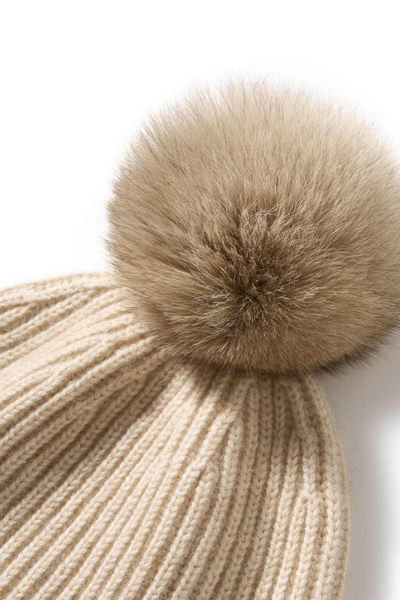 Cashmere Pom Knit Beanie