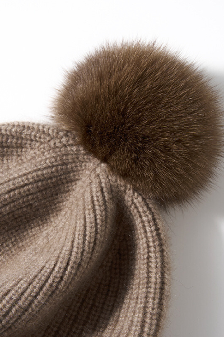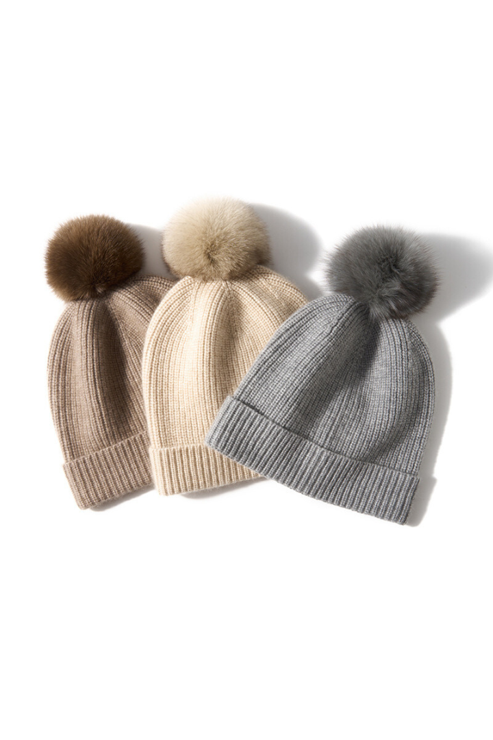 Crafted from ultra-soft cashmere, this women’s pom beanie brings together refined winter style and exceptional warmth. The plush ribbed knit and foldover cuff create a cozy, secure fit, while the real fur pom adds a touch of elevated charm. Lightweight, warm, and endlessly wearable, it’s the perfect cold-weather essential for city days, weekend escapes, and everything in between.