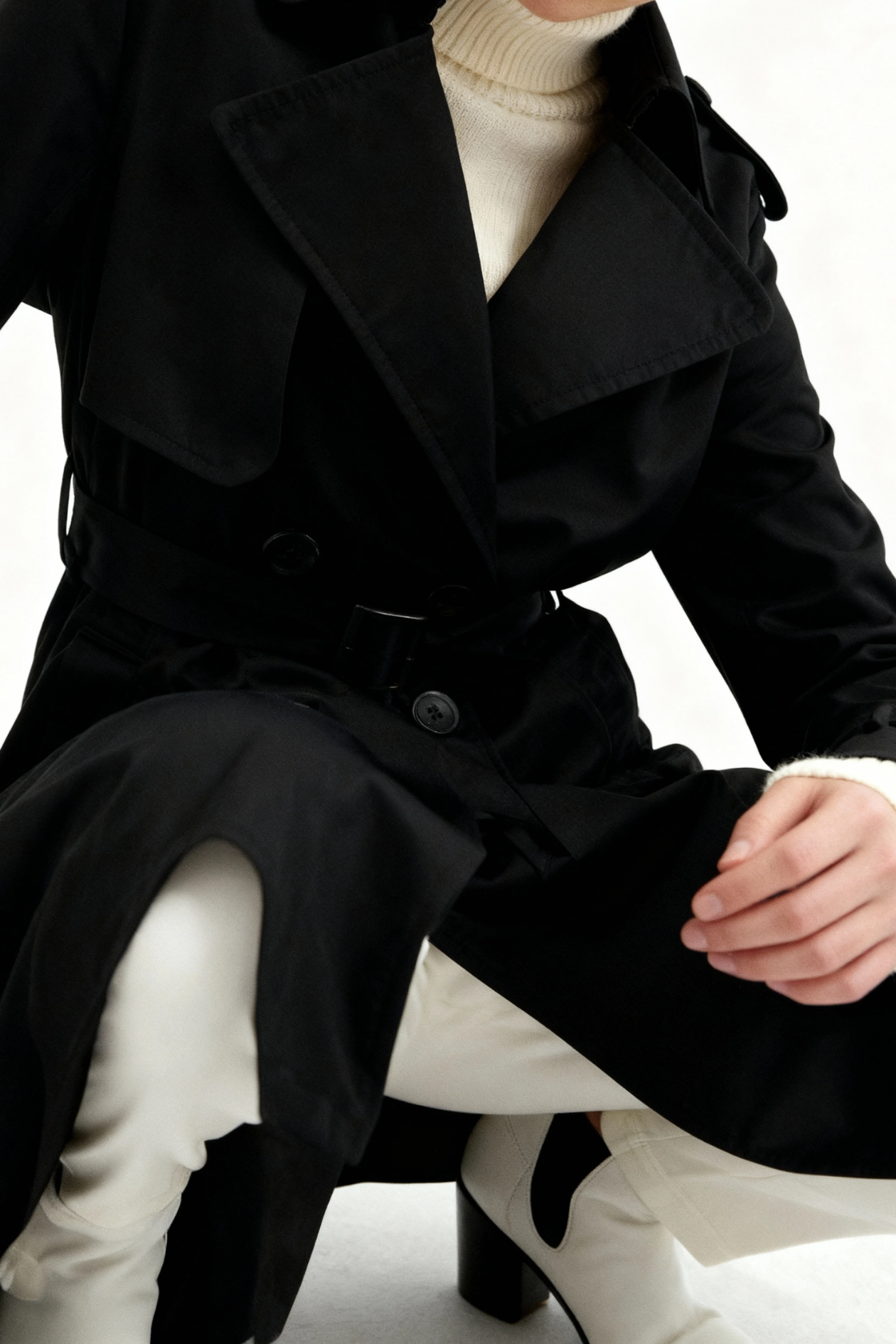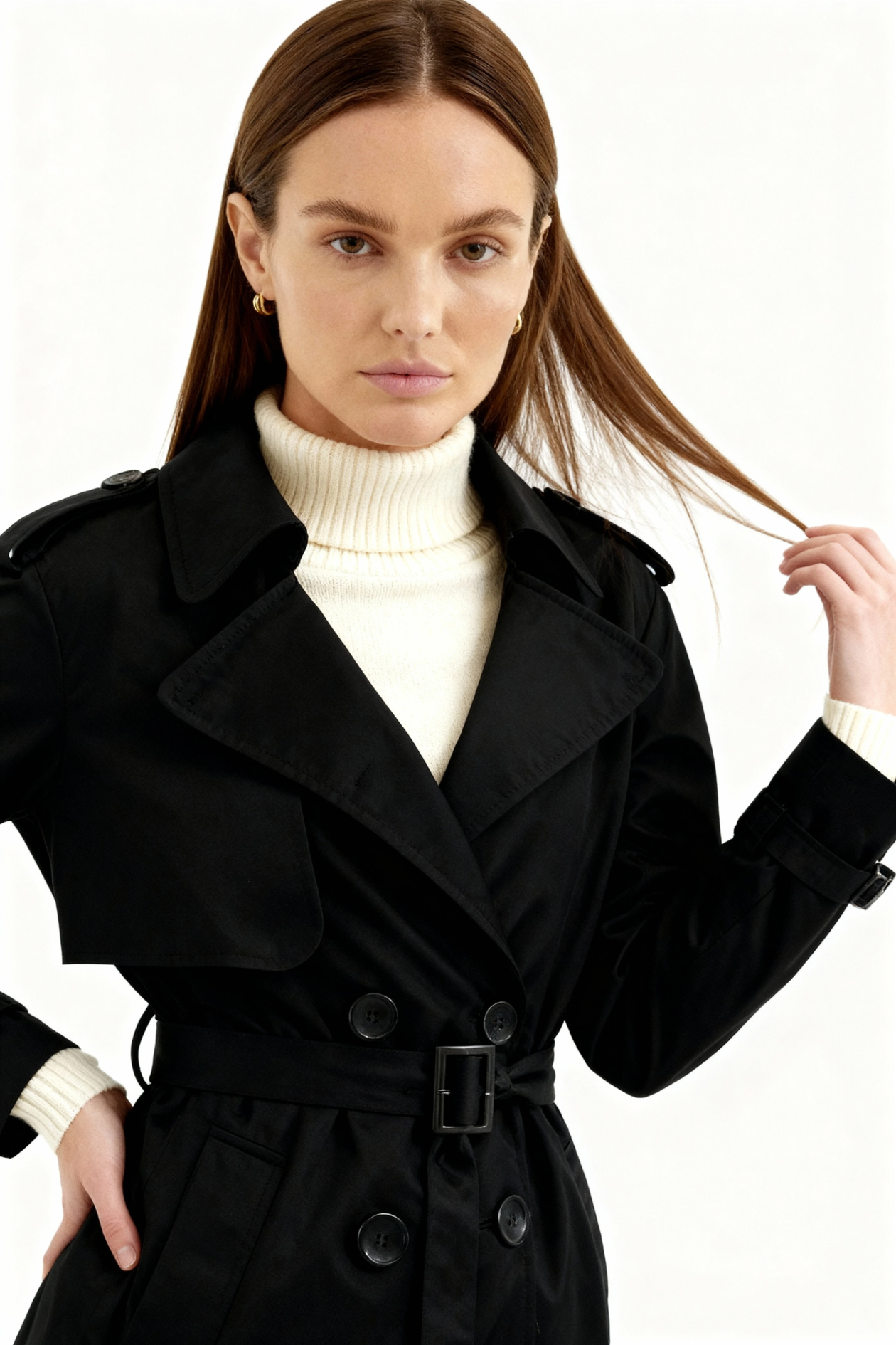 This Liora trench coat is a masterclass in refined outerwear design. With a classic double-breasted cut, structured collar, and a self-tie belt, it offers flattering tailoring that cinches at the waist for a feminine yet powerful silhouette. The durable fabric ensures comfort and ease — ideal for transitional seasons, city commutes, or weekend outings.