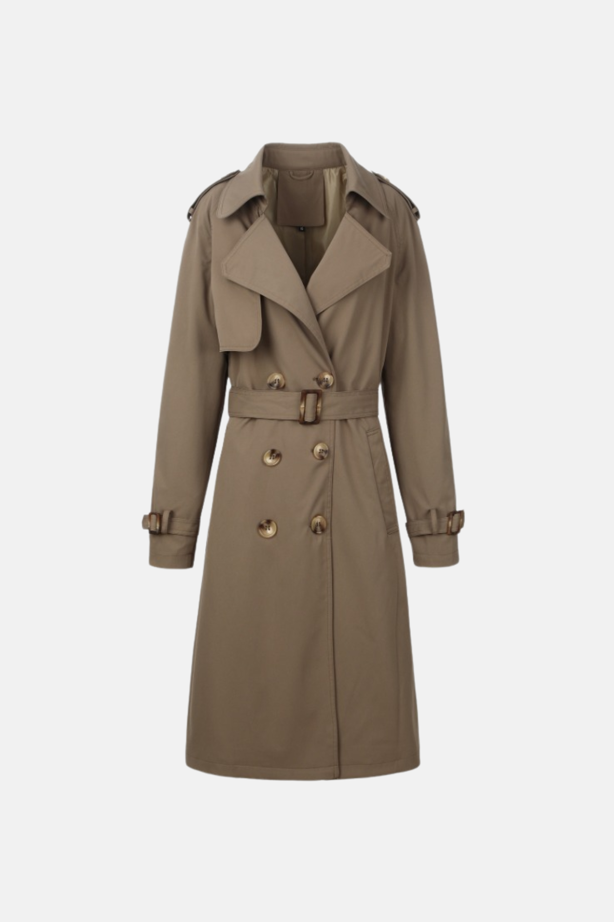 This Liora trench coat is a masterclass in refined outerwear design. With a classic double-breasted cut, structured collar, and a self-tie belt, it offers flattering tailoring that cinches at the waist for a feminine yet powerful silhouette. The durable fabric ensures comfort and ease — ideal for transitional seasons, city commutes, or weekend outings.