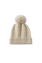 Crafted from 100% premium-grade cashmere, this beanie delivers the perfect balance of softness, warmth, and lightweight comfort. The intricate cable knit texture adds a refined touch, while the genuine fur pom brings subtle luxury to your cold-weather look.