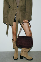 A shoulder bag does it all. Crafted from soft, textured suede, this bag is designed for modern women who want both capacity and style. Its fold-over flap design and rich brown and black tone bring understated sophistication to any outfit. The adjustable gold chain strap with a matching suede shoulder pad ensures comfort and versatility. It’s the bag that keeps up with your lifestyle.