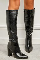 Step into sophistication with the Lucerne Knee-High Boot, designed for woman who refuses to compromise on style or comfort. Crafted from high-shine patent leather, these boots exude a premium, luxe feel while offering the durability of a rubber sole for all-day wear. Quality craftsmanship and supreme comfort with a street style edge.