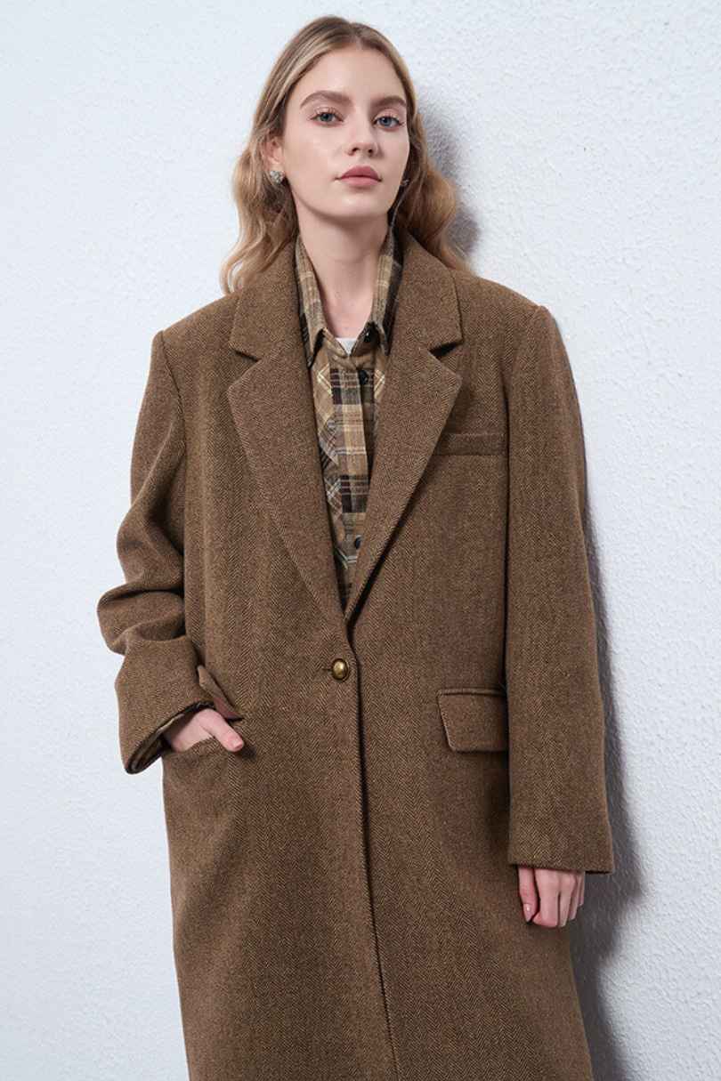 Monroe Long Herringbone Wool Overcoat