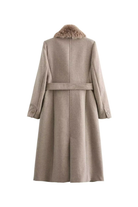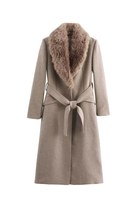 The Amara Wool Coat redefines classic outerwear with soft structure and refined detail. Crafted from a premium wool blend, it features a detachable faux fur collar, waist belt, and clean tailored lines that flatter every silhouette.