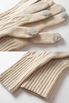 Knitted from a luxurious cashmere blend, these gloves deliver the comfort and warmth of cashmere with added durability for everyday wear. Their ribbed texture provides a naturally snug fit, while the subtle cable-knit detail adds timeless refinement.