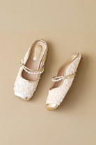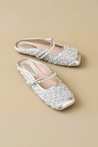 Step into sparkle with these Celestia sequin flats in silver and gold, crafted for both elegance and comfort. Featuring a chic square toe, glittering sequin overlay, and a delicate pearl strap detail, these slip-ons make a statement whether you’re dressing up for a wedding, evening out, or adding shine to your everyday look.