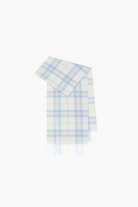 The Belmere Scarves are made of 100% wool and offers the perfect balance of softness, warmth, and refined winter style. Woven with a classic ice-blue and cream plaid pattern, it wraps effortlessly for a plush, insulating feel. Ideal for cold days and elevated everyday outfits.