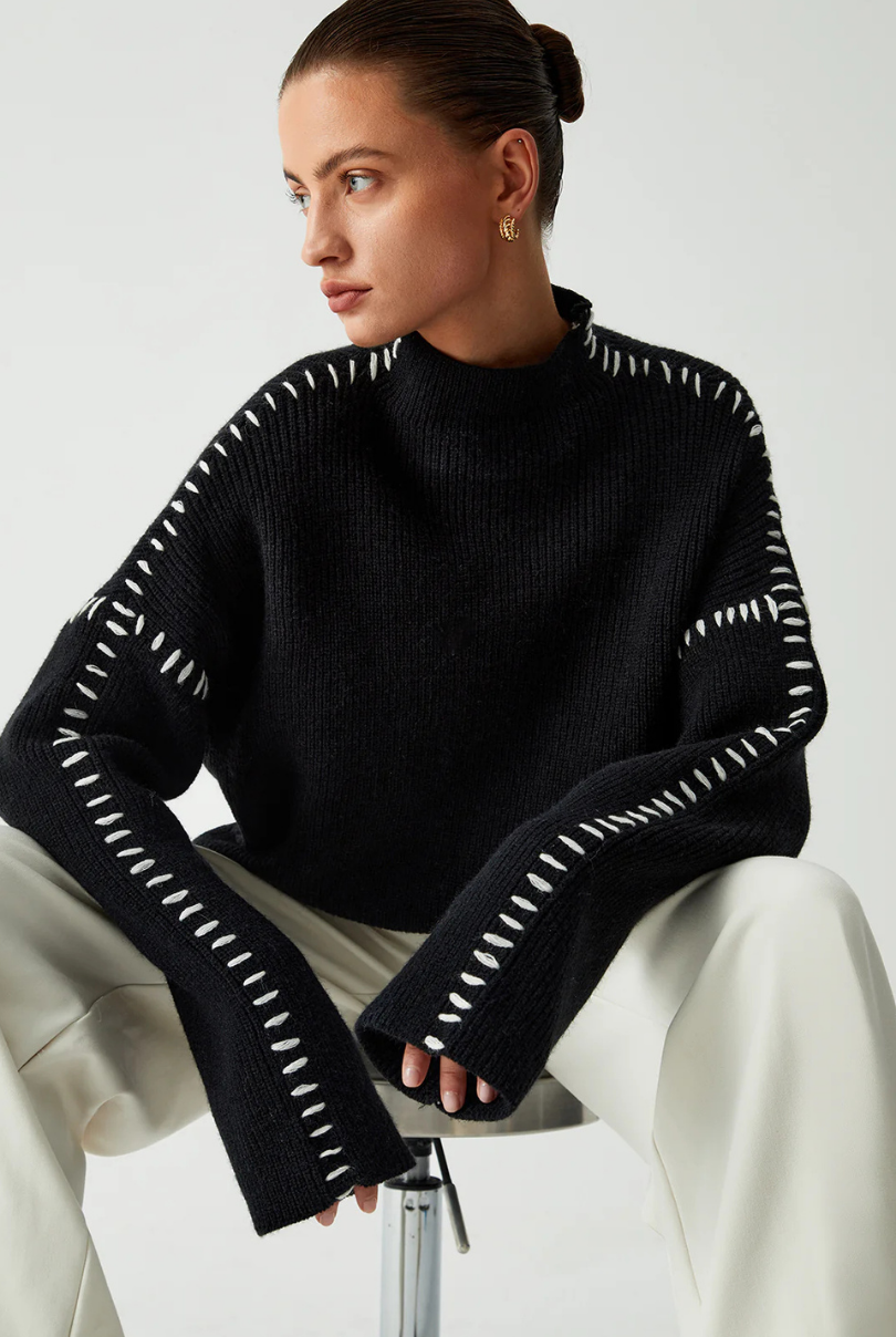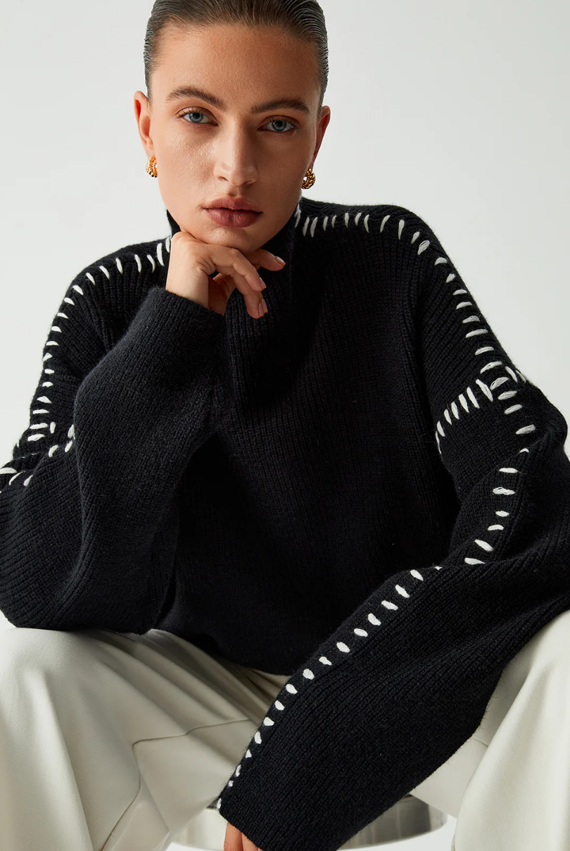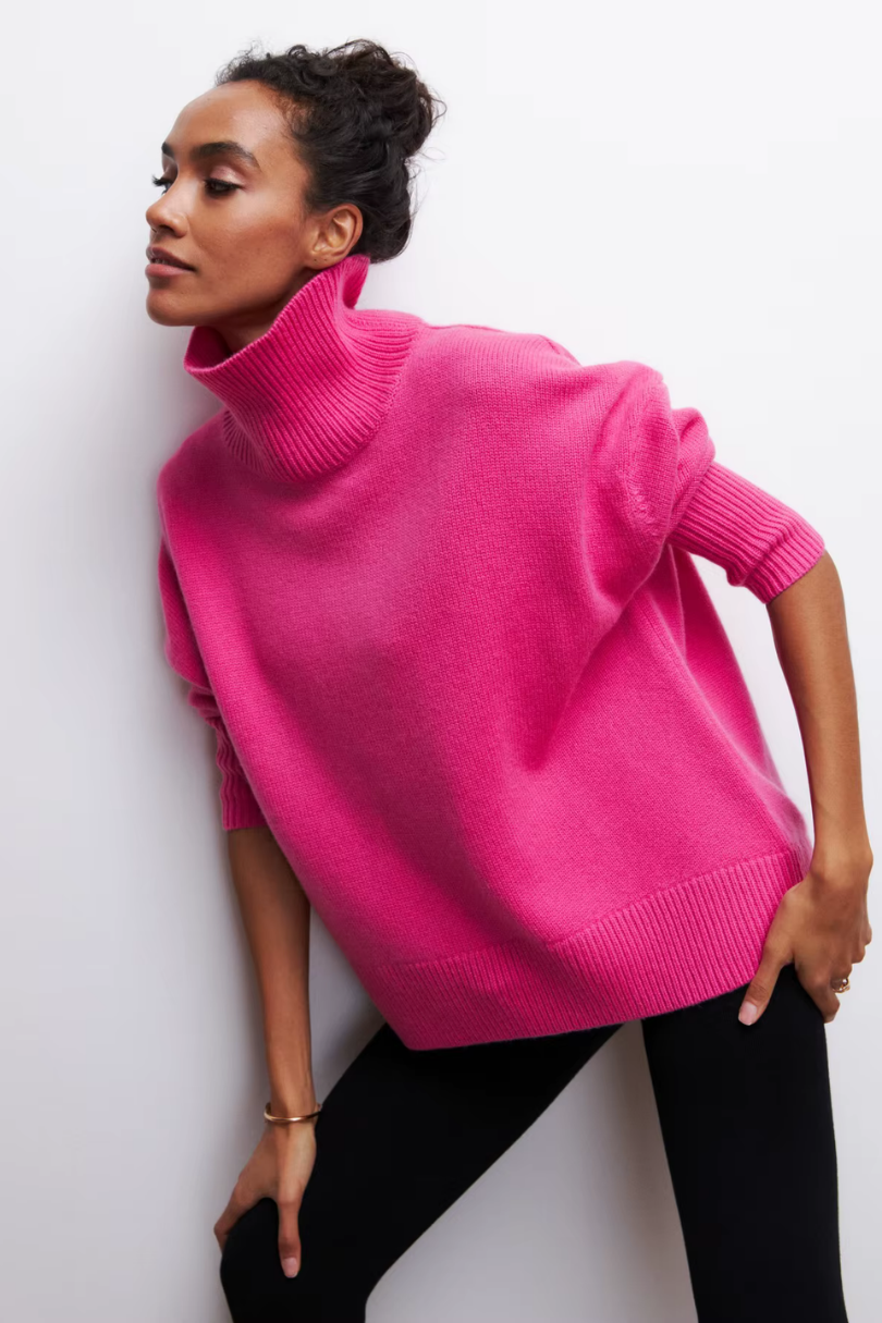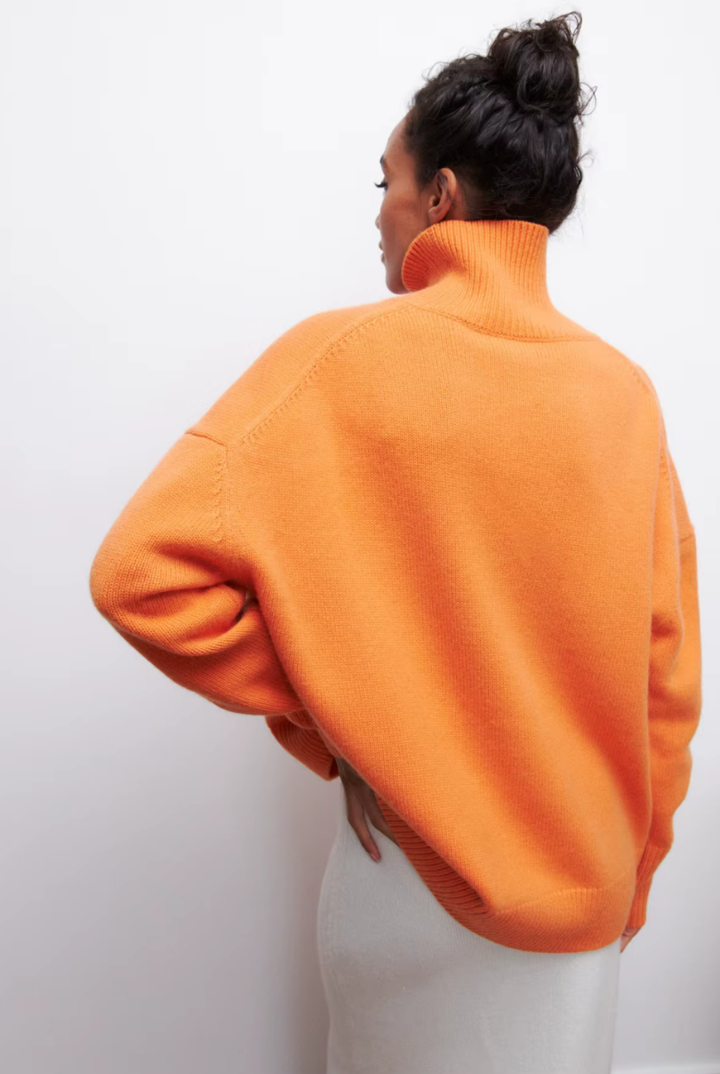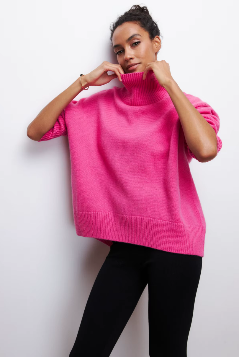 This oversized turtleneck sweater brings effortless sophistication to cold-weather styling. Designed with a relaxed silhouette and ribbed trims, it blends everyday comfort with polished knitwear elegance. Wear it solo for a statement or layer under coats for added warmth.